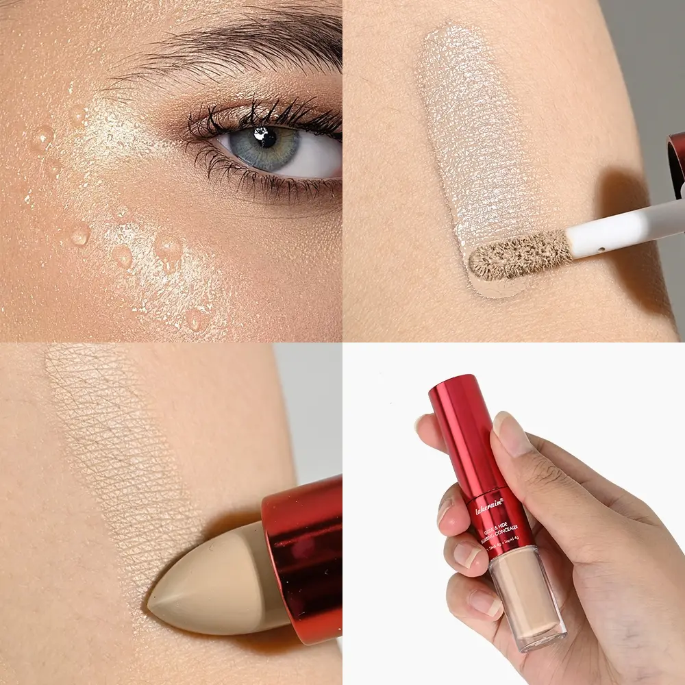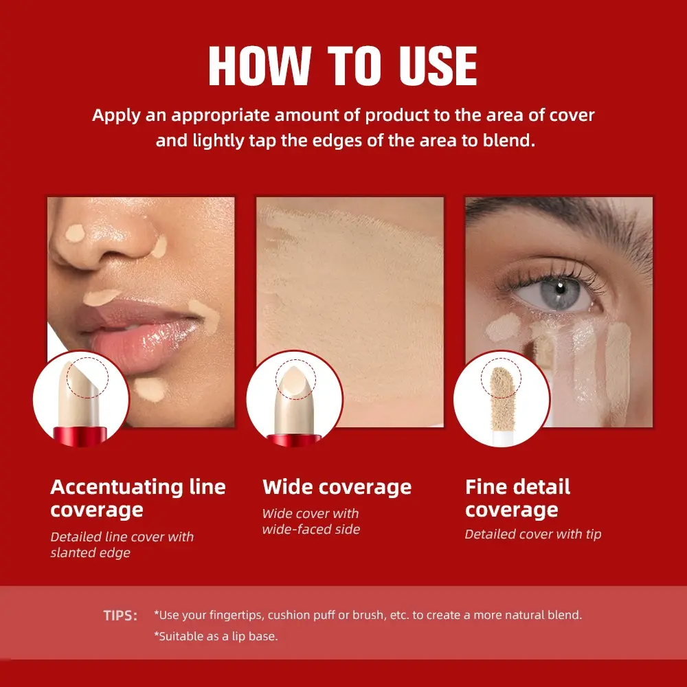 【Dual-Head Design】: Features a unique dual-head design combining a liquid concealer and foundation stick for versatility.