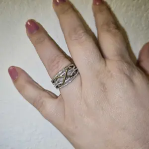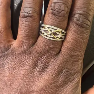 Glitzy cubic zirconia embellishments enhance the premium, glimmering texture. These inlays add a sparkling touch, making the ring stand out. The cubic zirconia ensures a luxurious look that catches the eye.