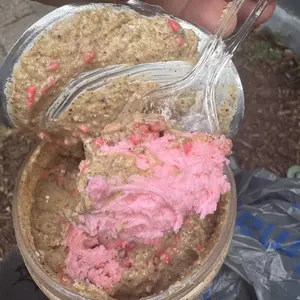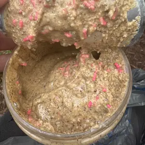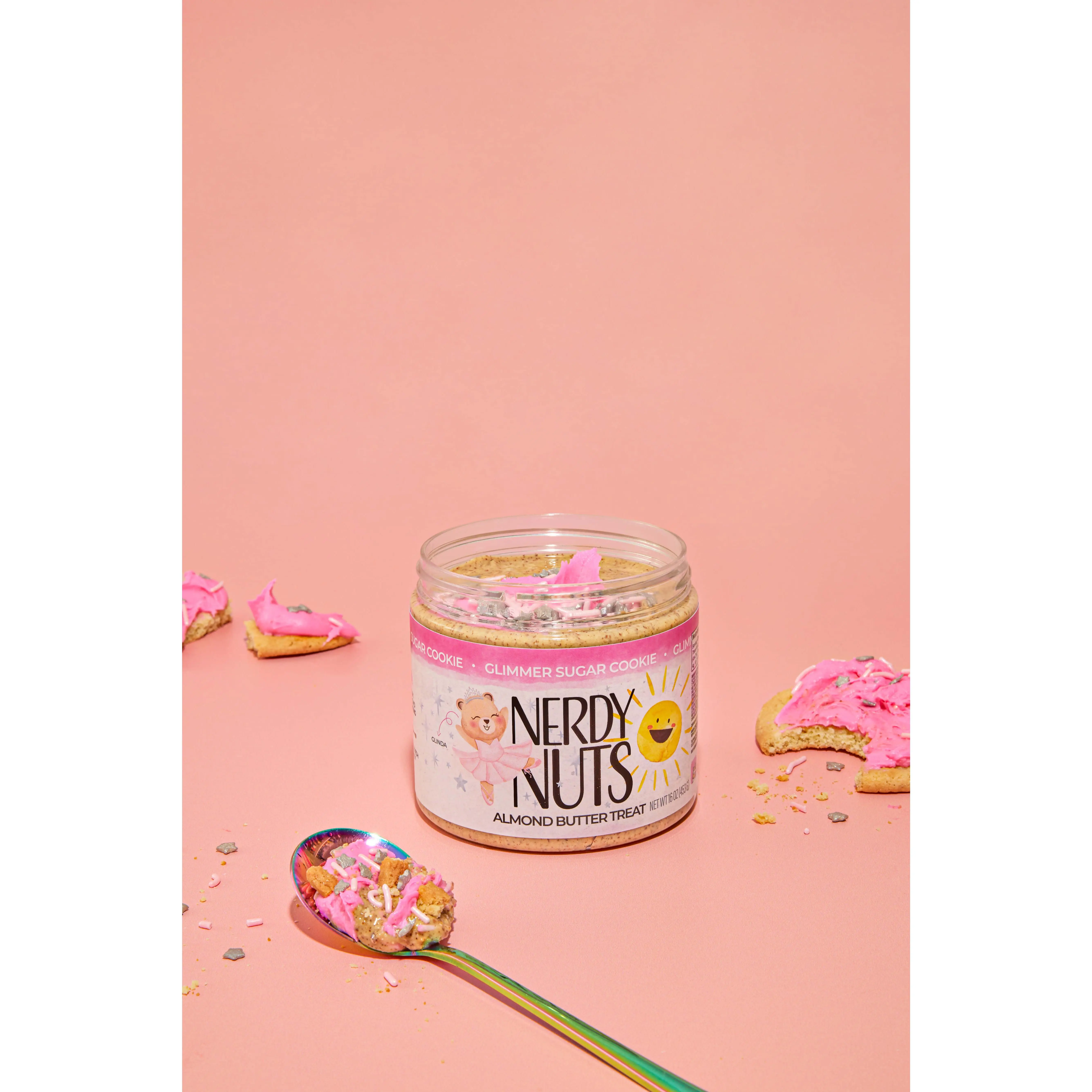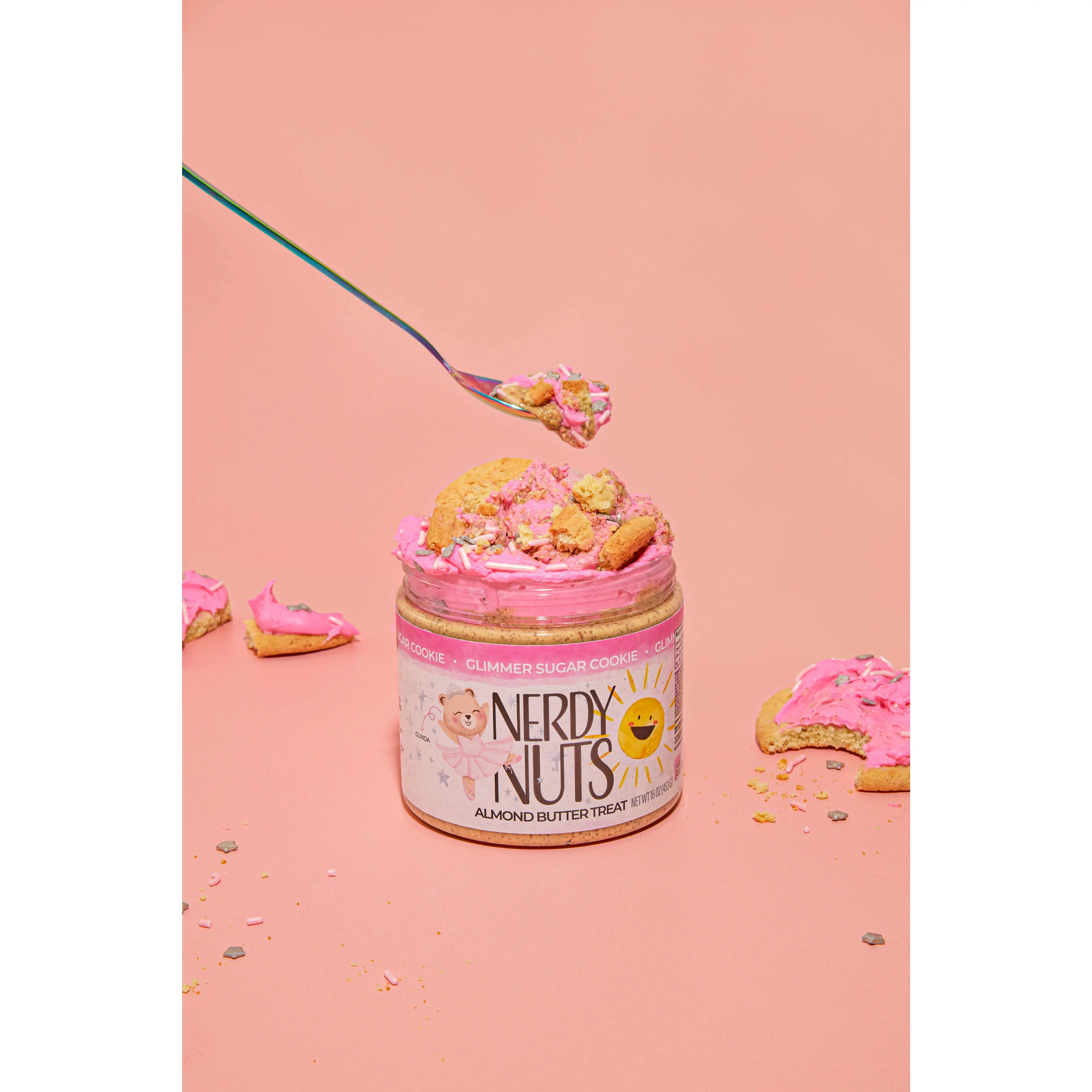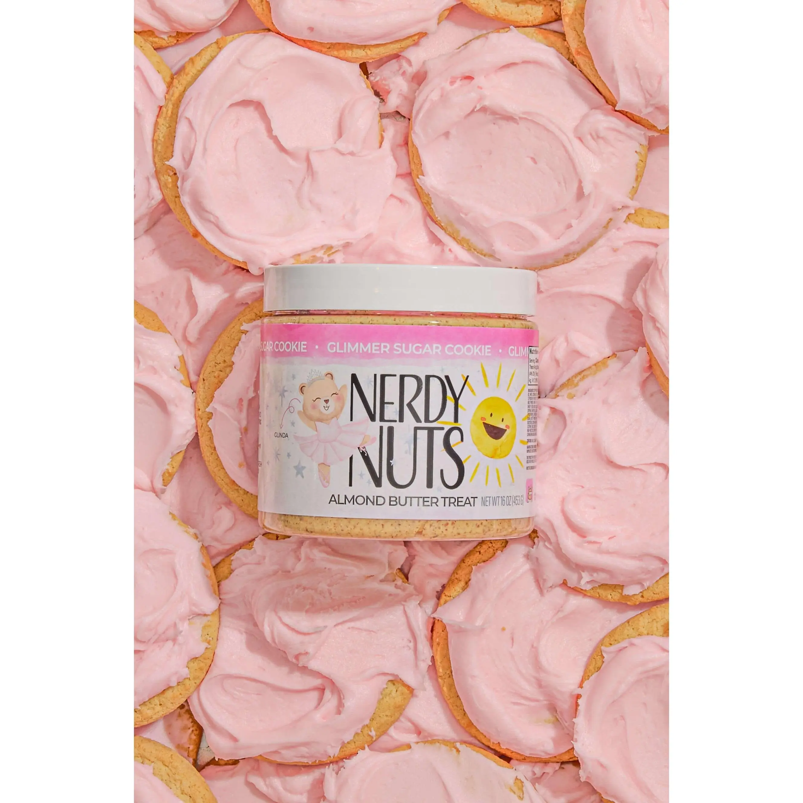 Vanilla almond butter is packed with sugar cookie chunks, frosted with pink almond flavored frosting, & topped with sprinkles!