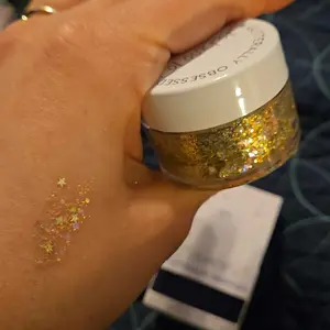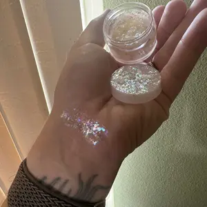 This is beautiful!!! Glittery but fine fine n sparkly… color is beautiful n translucent. No fall off either. Great for face n body alike! A terrific product 100%!!! 💝💝💝🫶🏼🫶🏼🫶🏼