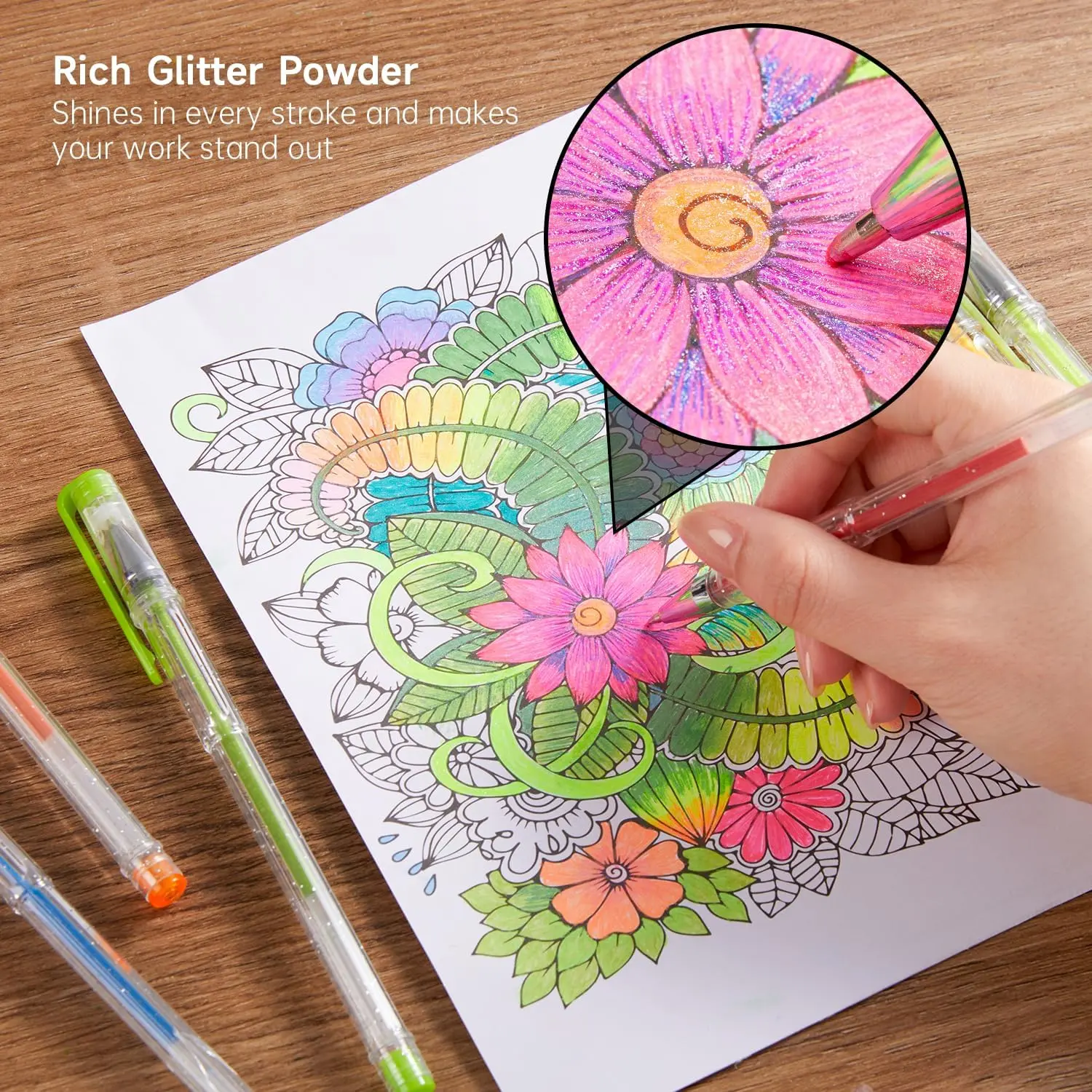 I wanted to wait a week after using Shuttle Art Glitter gel pens. I highly recommend them. They are smooth to draw with. I have been using them for Zentangle. Plus they come with refills.