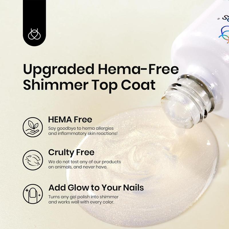 | Ingredients | "-Glitter Top Coat Acrylates Copolymer,Hydroxyethyl Methacrylate,Isobornyl Methacrylate,Silica,Ethyl Trimethylbenzoyl Phenylphosphinate,Hydroxycyclohexyl Phenyl Ketone,Polyethylene Terephthalate,Cellulose Acetate Butyrate,May Contain(+/-): Titanium Dioxide(CI 77891),D&C Black No. 2(CI 77266),Diiron Trioxide(CI 77491),Iron Hydroxide Oxide(CI 77492),Ferric Ferrocyanide(CI 77510),Synthetic Fluorphlogopite,Platinum,Silver,Mica,Triiron Tetraoxide(CI 77499).",-Glitter Top Coat (HEMA Free)