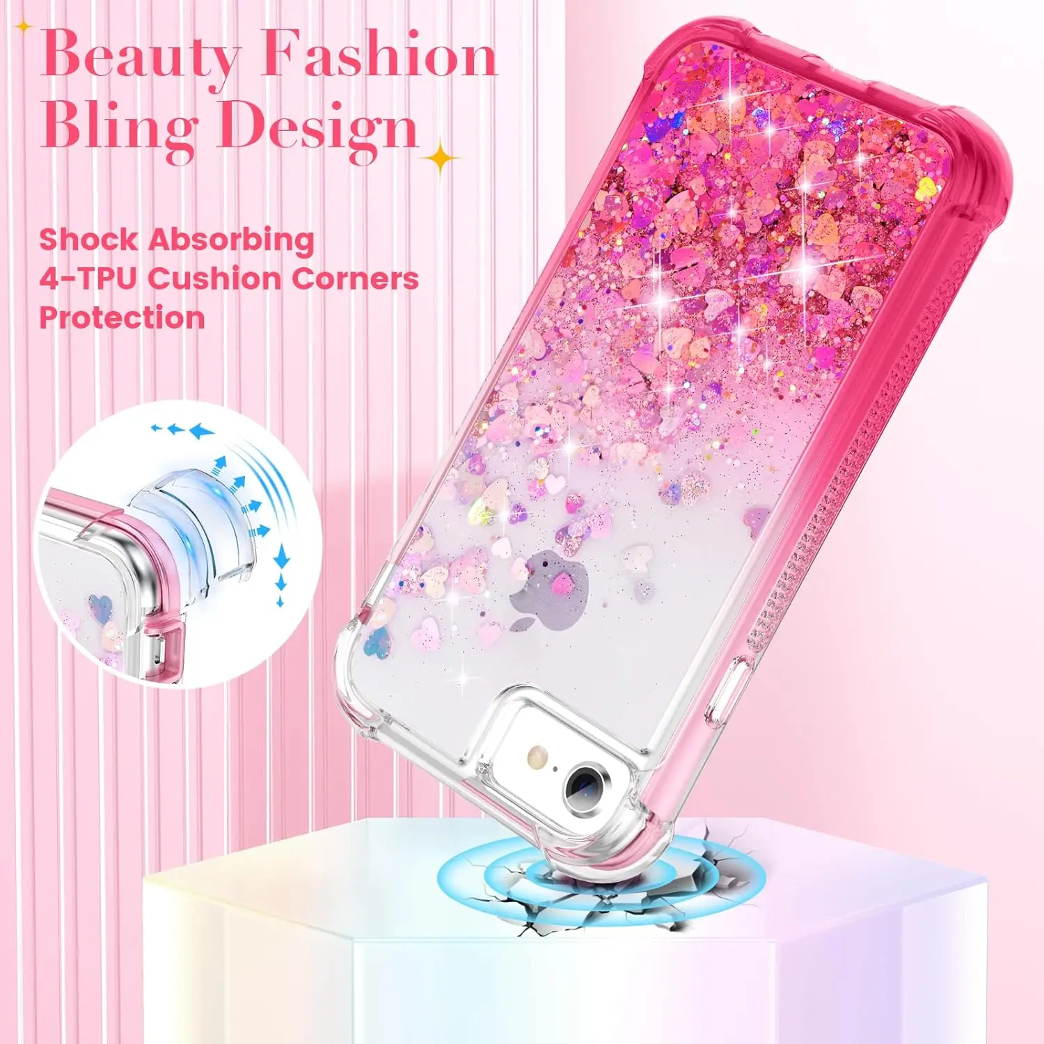 [Beauty & Fashion Bling Design] The glitter liquid design not only make your SE 2022 beauty but also more interesting to play, the bling love heart sequins could flow freely inside and change its color with floating up and down, give your loved one a big smile on her .