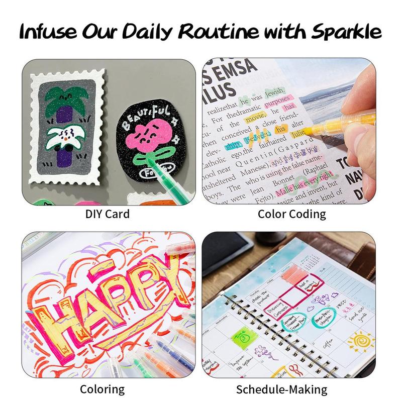 5. Glitter Highlighter Marker Pen, 6 Counts/set Double Color Highlighter Marker Pen, No Bleed Colors Highlighter Marker Pen for Journaling, Students School Office