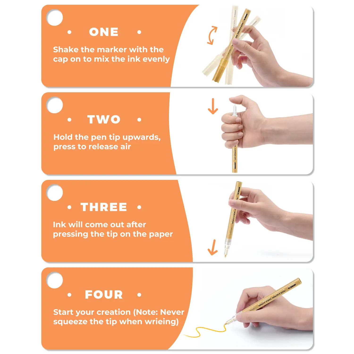 ·Non-Toxic: Crafted with high-quality, non-toxic, and odorless water-based ink, these markers are safe for both kids and adults. The ink ensures long-lasting color, it is not prone to fading or discoloration, allowing you to add a stunning sparkle to your artwork.
