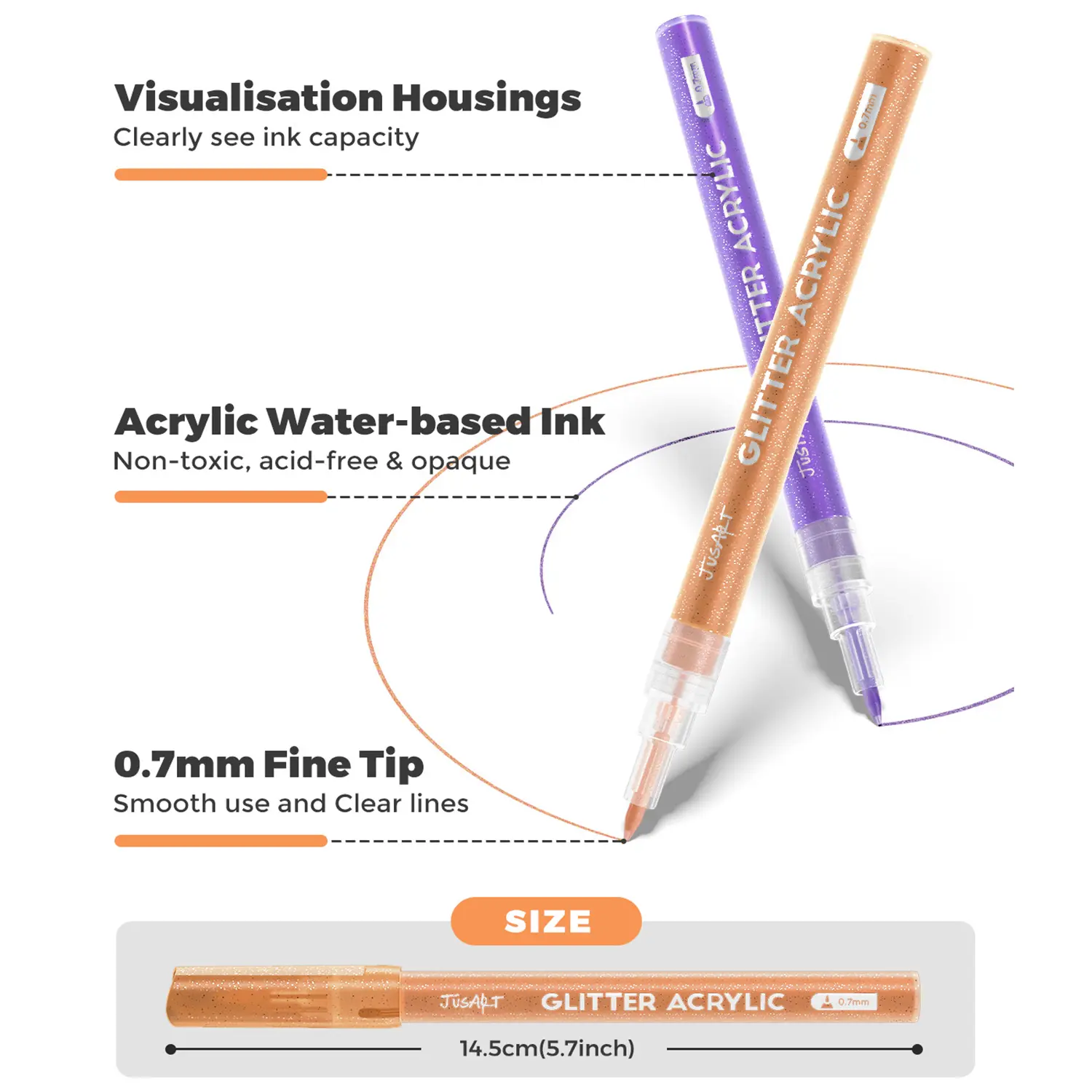 ·Smooth and Easy Flow: Enjoy a smooth writing experience with a durable 0.7mm fine tip that delivers flowing and clear lines. These glitter markers are ideal for making precise strokes and filling larger areas. Whether it's writing, painting, or marking with a highlighter, you can have a great experience that enhances the quality of your creation.