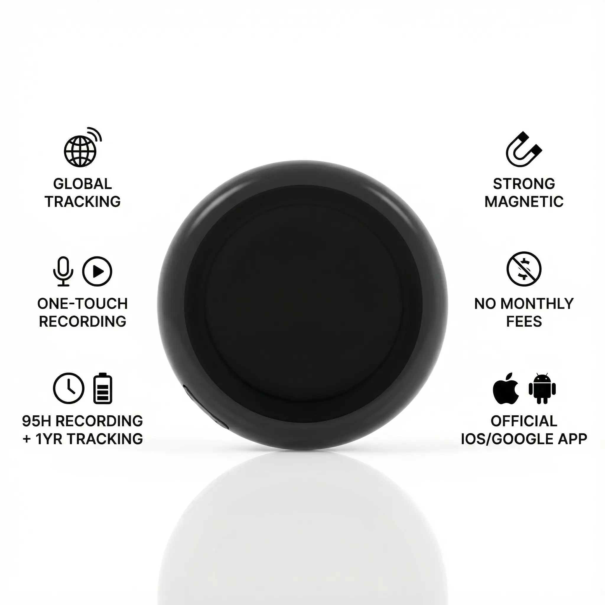 Global GPS Tracker & Ai Recorder - Advanced GPS Tracking Device with High-Quality Audio Recording Features,One-Touch Recording and Accurate tracking,Strong Magnetic,Record continuously for 96 hours and Track for 1 year,For IOS and Android