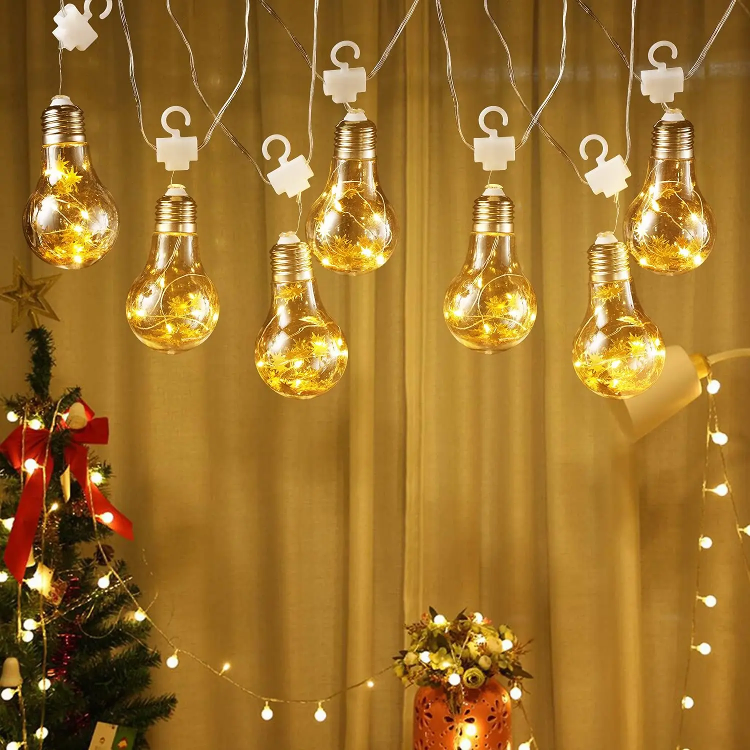 The YuleGlow Globe Bulb String Fairy Lights are a 3W, energy-efficient, vintage Edison bulb design, perfect for creating a cozy warm lighting atmosphere for parties, weddings, and Christmas.
