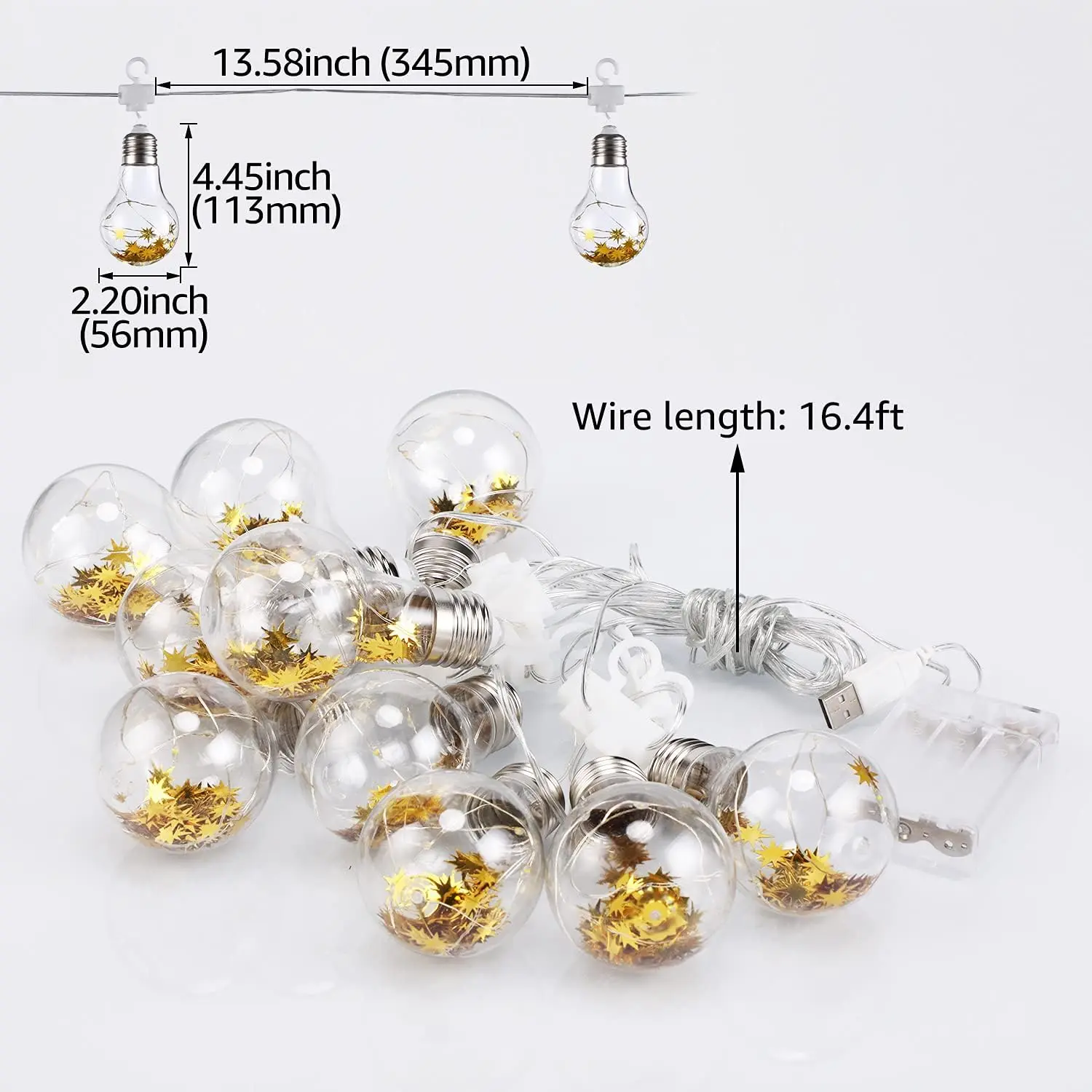 ·The string light spans 16.4ft with LEDs spaced 0.96ft apart.