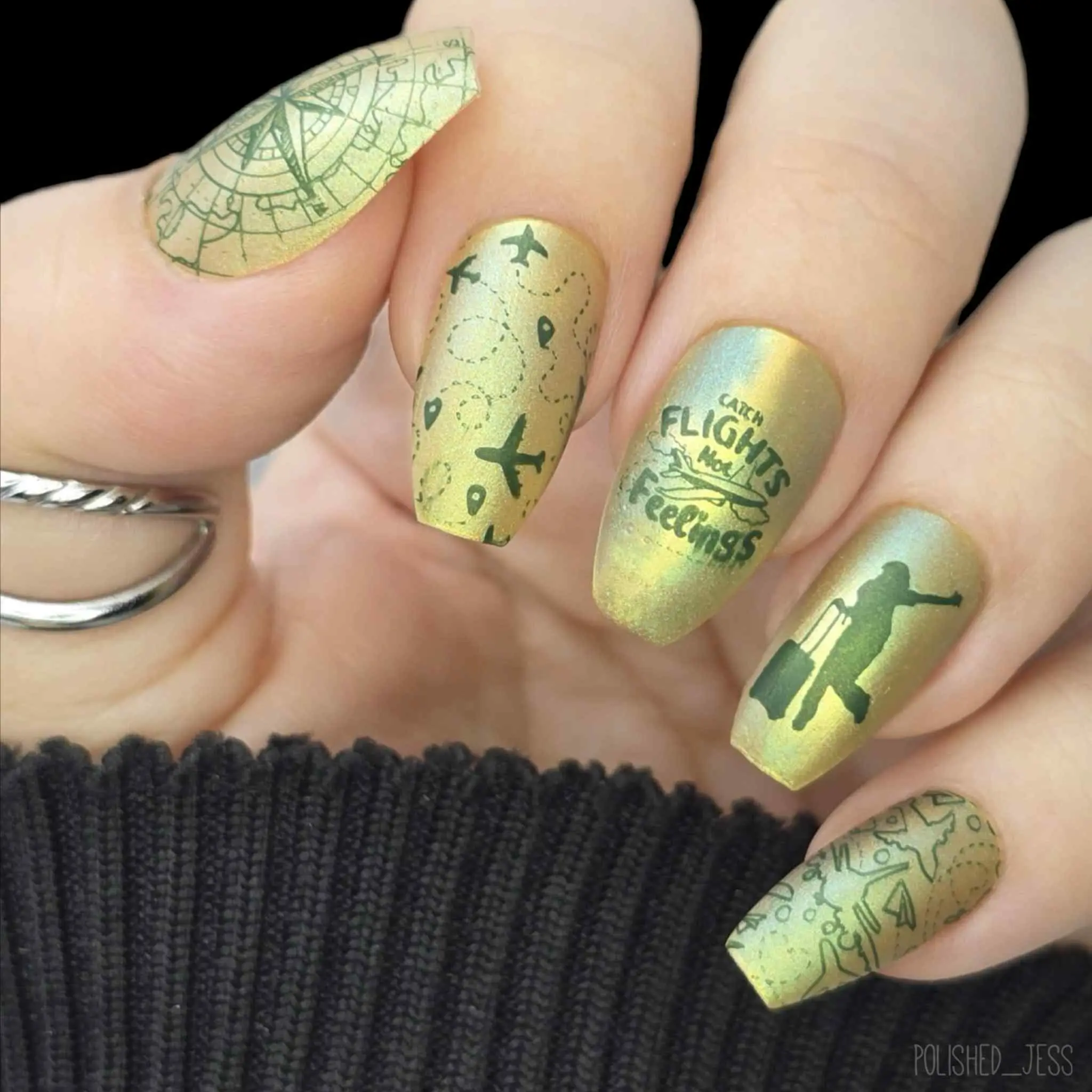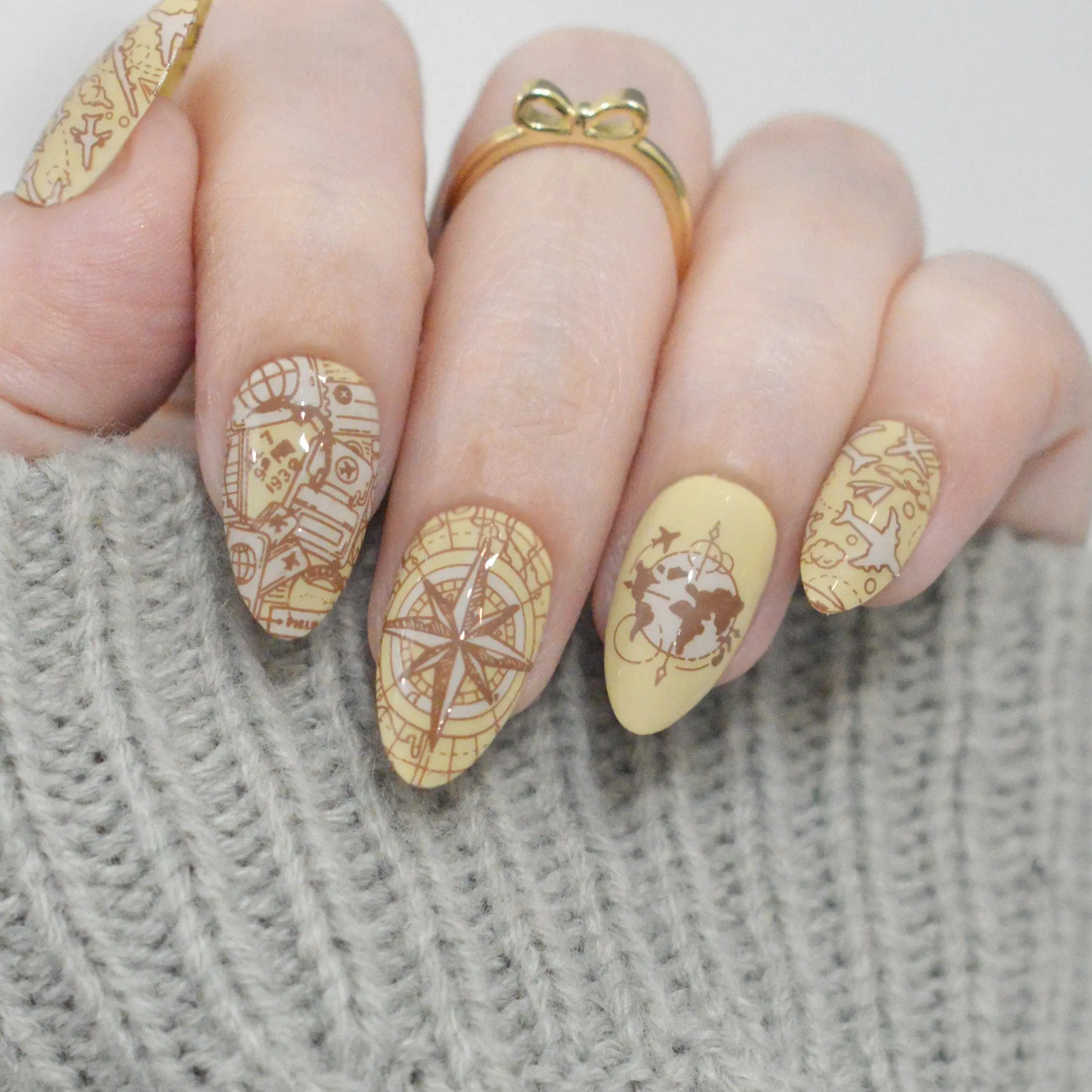 Your passport isn’t the only thing getting stamped! Catch flights and nail stamps with our Globe Trotter stamping plate. Perfect for travel-loving nail art fans, this plate is packed with all your favorite travel-themed nail designs. With a fun mix of passport stamps, luggage stacks, globe, camera, globe-trotting adventurers, and cloud-filled window seat view, plus full nail patterns of compass and world map, airplane trails, and cute travel signs, you'll be ready to take off with the cutest travel nails! These tiny stamps bring total wanderlust vibes, a little adventure, and a lot of creative freedom.