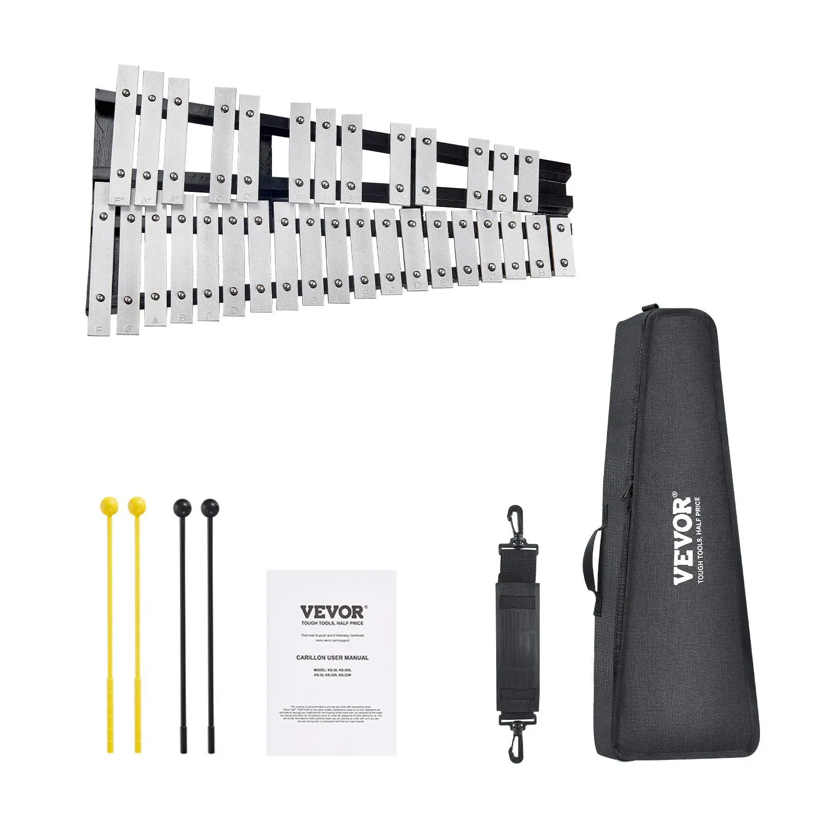 5. VEVOR 32 Note Glockenspiel Xylophone Bell Kit, TikTokShopBlackFriday, Percussion Instrument with Mallets, Drum Sticks and Carrying Bag, Professional Glockenspiel Xylophone Percussion Instrument Set for Adults & Students