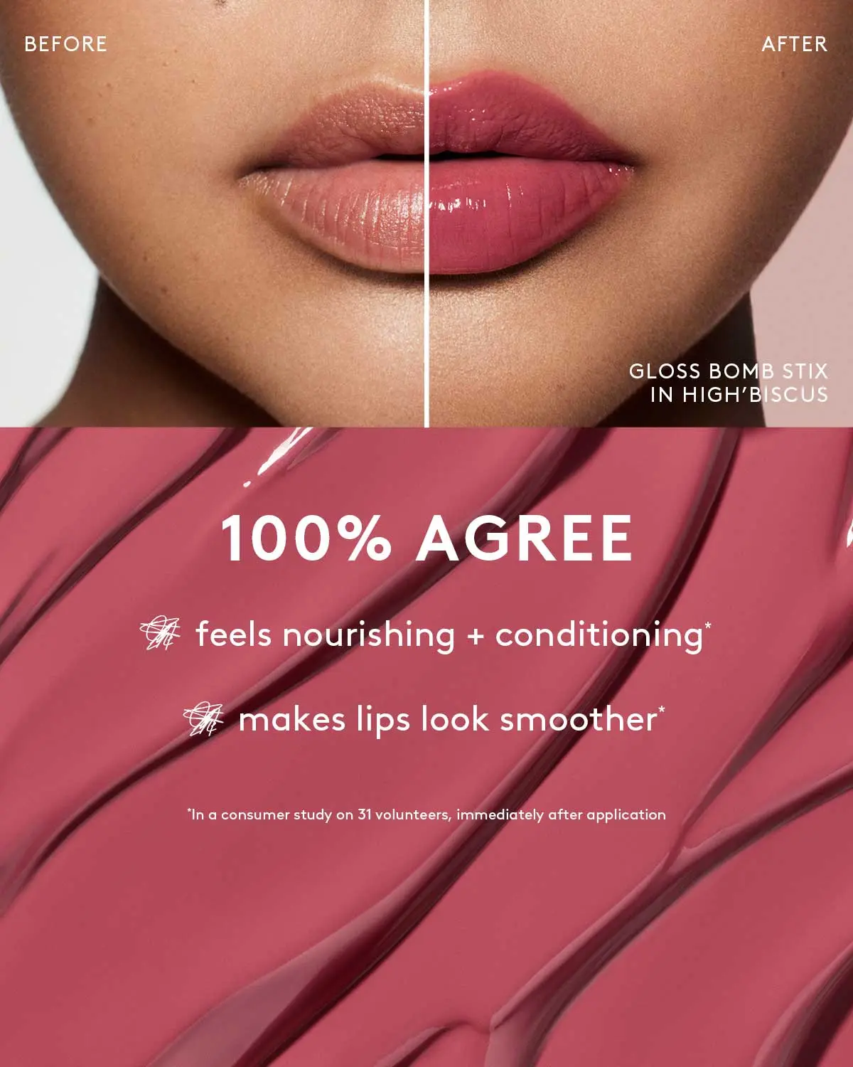 It’s about to get juicy: luscious lip gloss and lipstick hooked up, and now you can get Gloss Bomb’s explosive shine in a color-packed stick. The moisture-lock formula is packed with lip-loving ingredients to condition, nourish and keep lips lookin' plump.