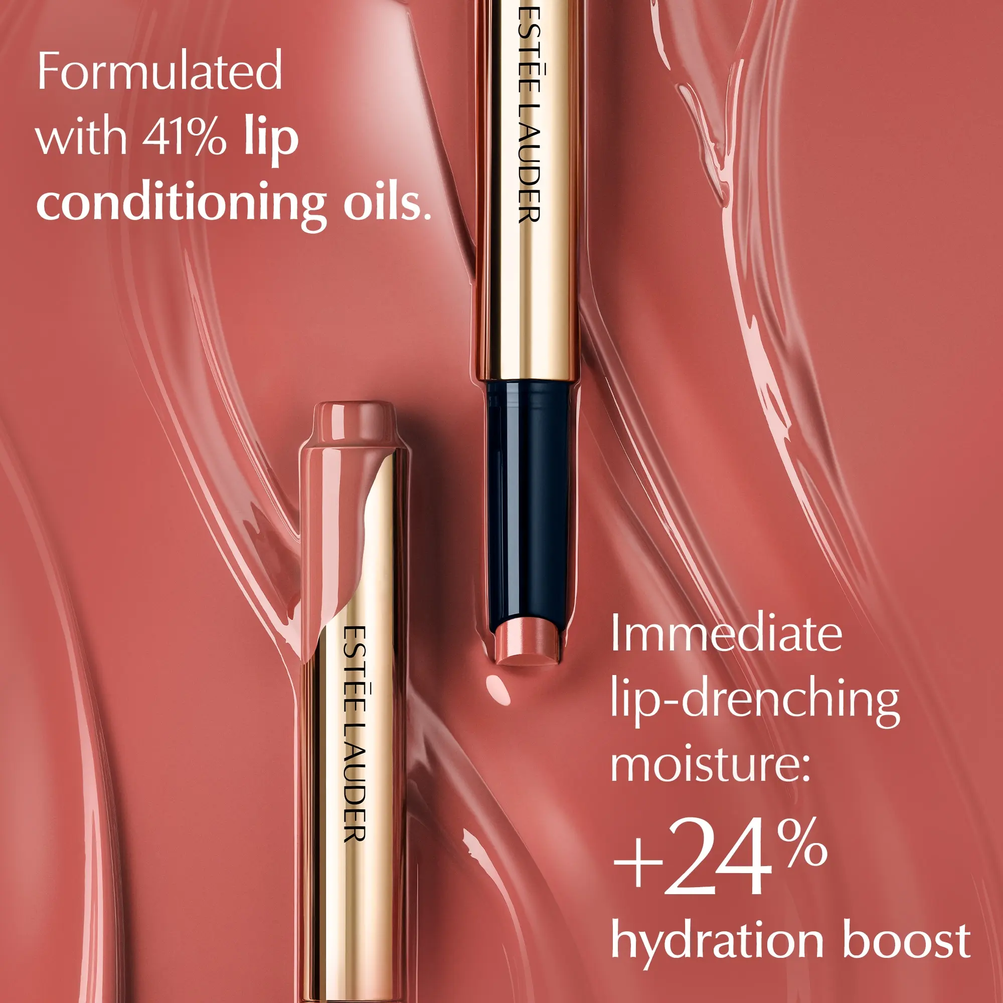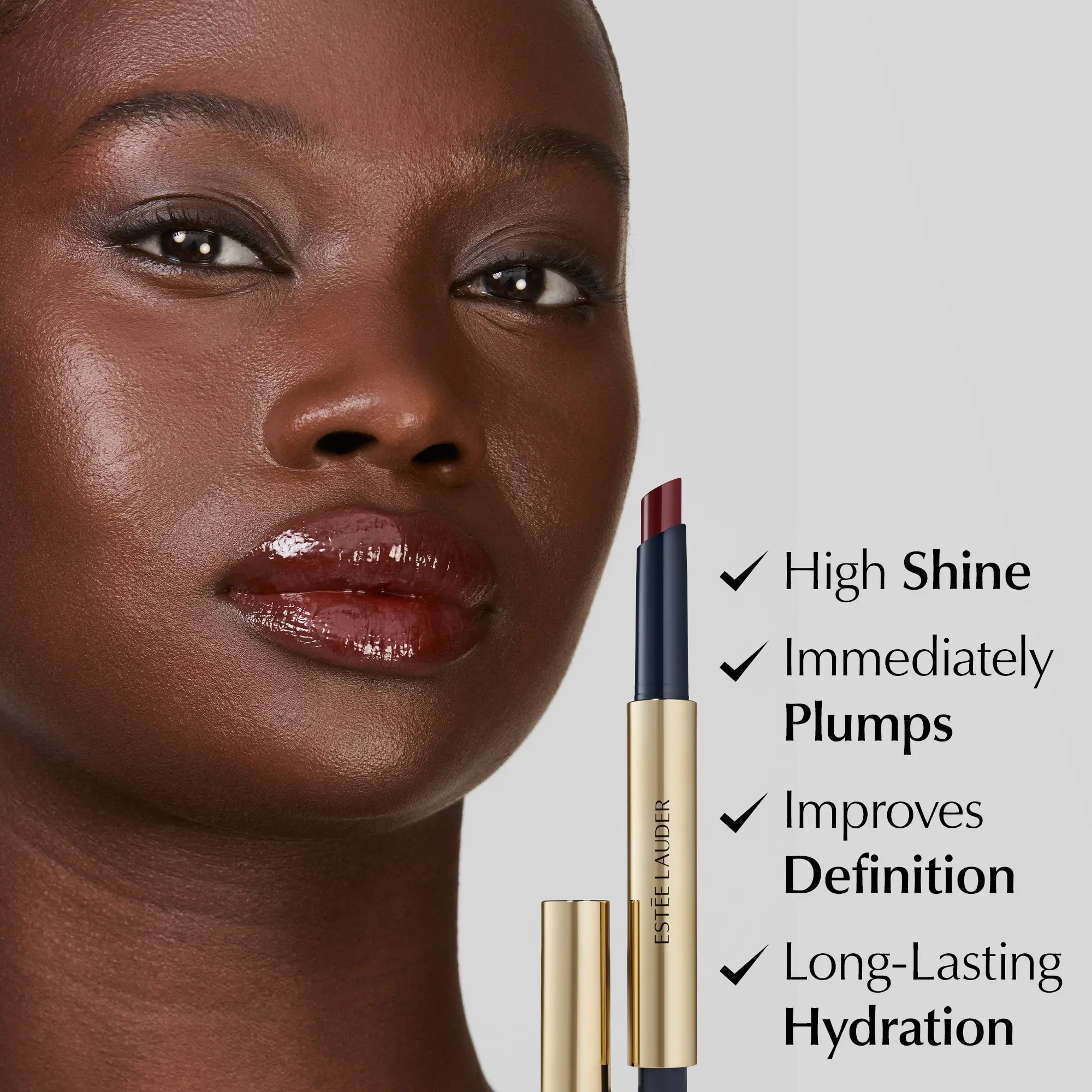 Immediate lip-plumping effect. Lush, pillowy comfort and brilliant light reflection—the customizable shine builds with every swipe.