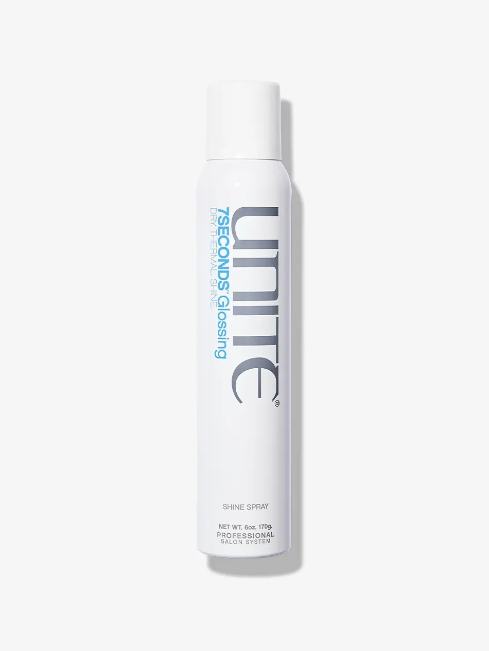 Shiny, beautiful hair is just seconds away with 7SECONDS Glossing Spray. This dry and airy anti-humectant shine spray delivers a long-lasting shine, plus UV and thermal protection. Use on dry hair before heat tools to protect hair and after for the ultimate shine.
