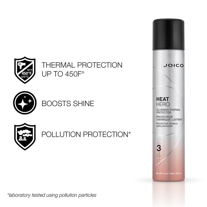 Heat Hero Glossing Thermal Protector instantly delivers a shield between your hair and any thermal-styling tool in your repertoire; and infuses + fortifies hair with a healthy, glossy sheen that locks out dulling pollutants.