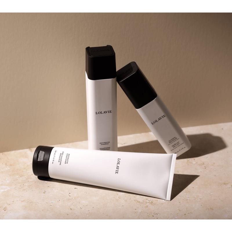 Naturally-derived, plant-based ingredients in advanced formulations designed to promote healthier-looking hair for all types and textures. Formulated with LolaVie Bond Technology – a truly proactive approach to repairing the look of existing damage while protecting from future damage by harnessing the power of chia seeds. Cleanse, hydrate and fortify scalp and hair with our Restorative Shampoo and Conditioner. Prime and protect with our best-selling, award-winning Glossing Detangler.