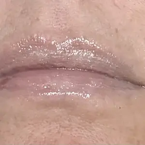 Really subtle shimmer, gorgeous subtle color. Softening on the lips and non sticky