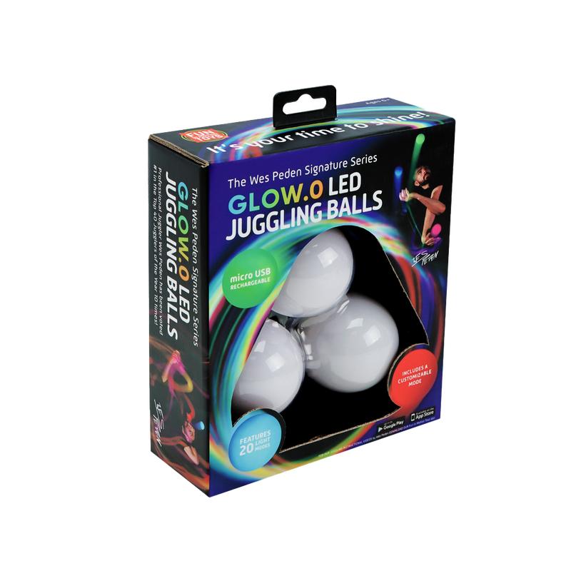Let your performances shine with the Wes Peden Signature Series Juggling Balls. Each Glow.0 Juggling Ball features 2 LED lights for a brighter and more colorful juggling experience. You’ll have full control over selecting all the beautiful color options or customizing your light modes. A programmable memory chip allows you to select different colors for each light to mix it up and create spectacular light trail performances.