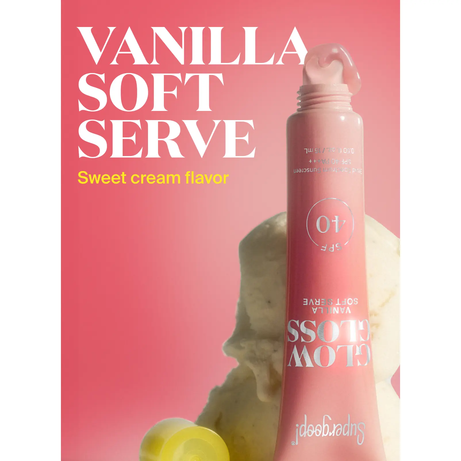 | Active Ingredients | Active Ingredients Glow Gloss Lip Balm SPF 40 - Pink Peppermint: Avobenzone 3%, Homosalate 5%, Octisalate 4%, Octocrylene 4.5% Glow Gloss Lip Balm SPF 40 - Strawberry Spritz: Avobenzone 3%, Homosalate 5%, Octisalate 4%, Octocrylene 4.5% Glow Gloss Lip Balm SPF 40 - Vanilla Soft-Serve: Avobenzone 3%, Homosalate 5%, Octisalate 4%, Octocrylene 4.5% |