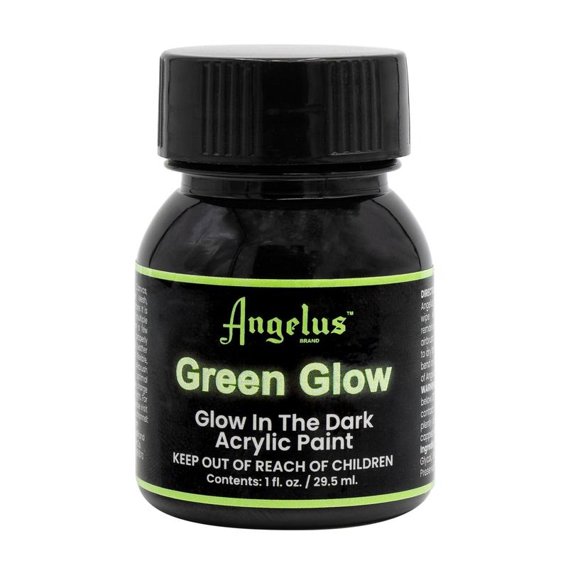 Another amazing product from Angelus. Many different ways to apply but found the best method for my project was to mix in a 50/50 ratio with a colored acrylic paint by Angelus. When applying just the GITD paint over another color, I found that with enough coats to get the phosphorescence to really pop the paint came out looking too white/yellow. By mixing it with another color, the end result both glowed extremely bright and also kept the base color intact. The paint emits a visually stunning neon green in dark light after being charged under UV. Angelus, I love this product and hope that you will have other colors available down the road!
