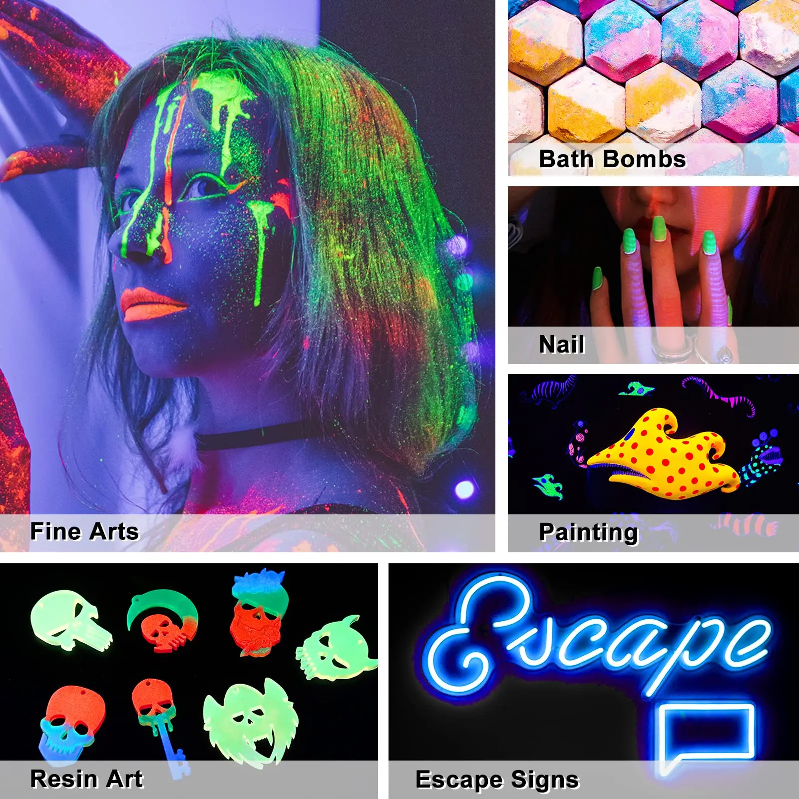 ·WIDE APPLICATION PIGMENT POWDER: Luminous pigments are perfect for slimes, nails, epoxy resins, bath bombs, paintings, fine arts, crafts, escape signs, and DIY. Good for eye-catching decorations!