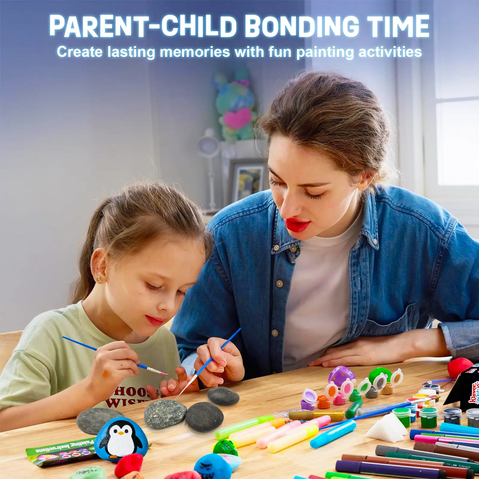 DEVELOPMENT. This Rock Painting Kit is straightforward to use and comes with a bunch of benefits. This improves the creativity of your kids. It gives them a sense of creation, which is excellent for developing motor skills and Hand-eye coordination.