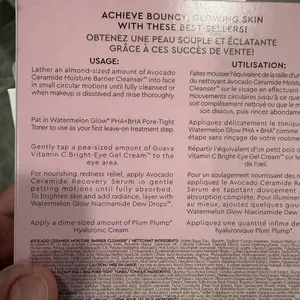 This travel-size set of bestsellers, including Watermelon Niacinamide Dew Drops, harnesses the power of clinically effective actives—PHA, AHA, ceramides, vitamin C & hyaluronic acid—to visibly tighten pores, soothe, brighten under eyes & hydrate for glowing skin.