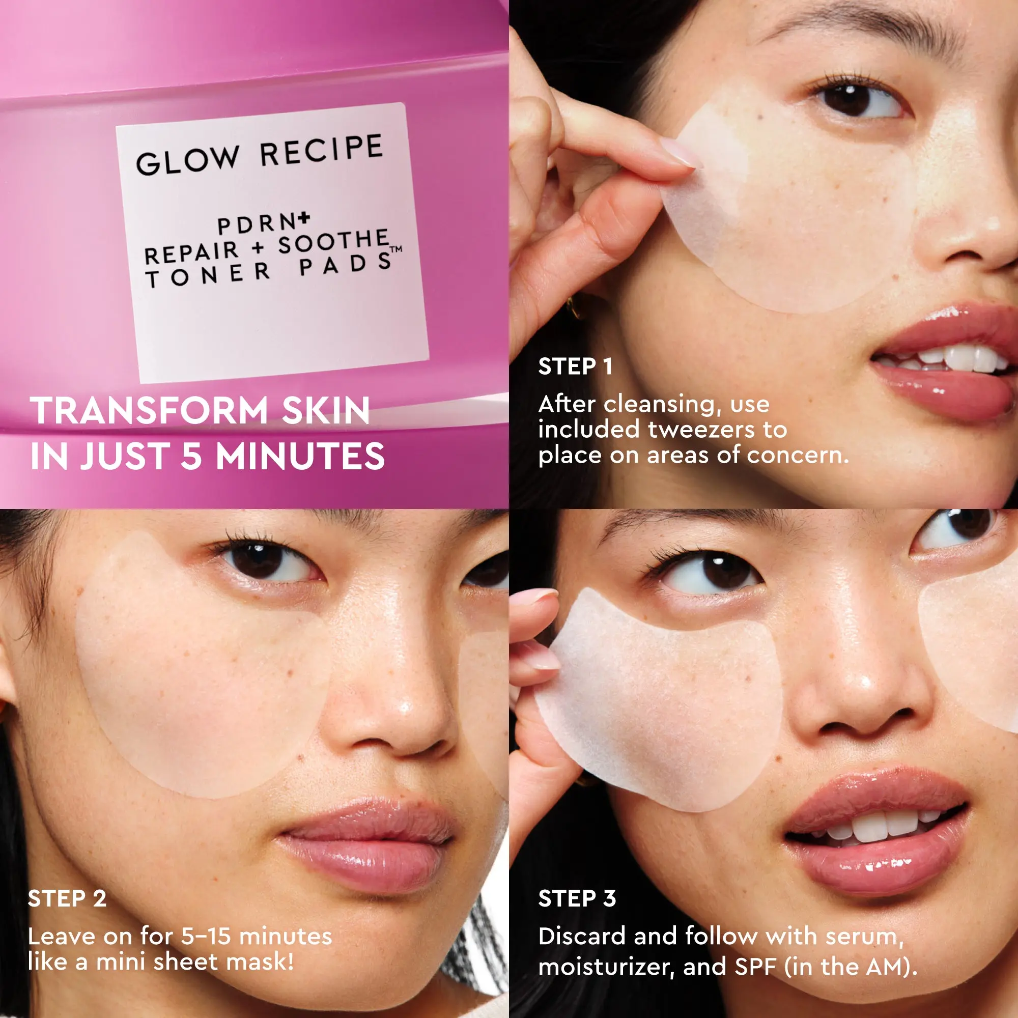 A 5-minute Korean facial in a pad! These ultra-thin toner pads pair vegan PDRN+ with 5 calming actives (Adenosine, Glycerin, Beta Glucan, Centella, & Panthenol) to visibly reduce redness, support collagen regeneration, deeply hydrate, and repair the skin barrier for smoother, more resilient skin.