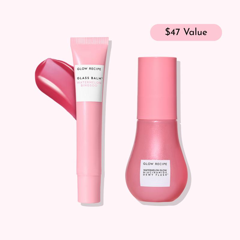 Your dewy glow, simplified. This duo pairs a radiant cheek tint with a juicy lip treatment. That is perfect for everyday fresh vibes.