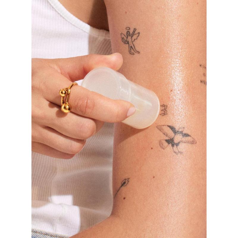 A portable sunscreen stick that leaves skin with a glowy finish & doubles as a face & body highlighter.