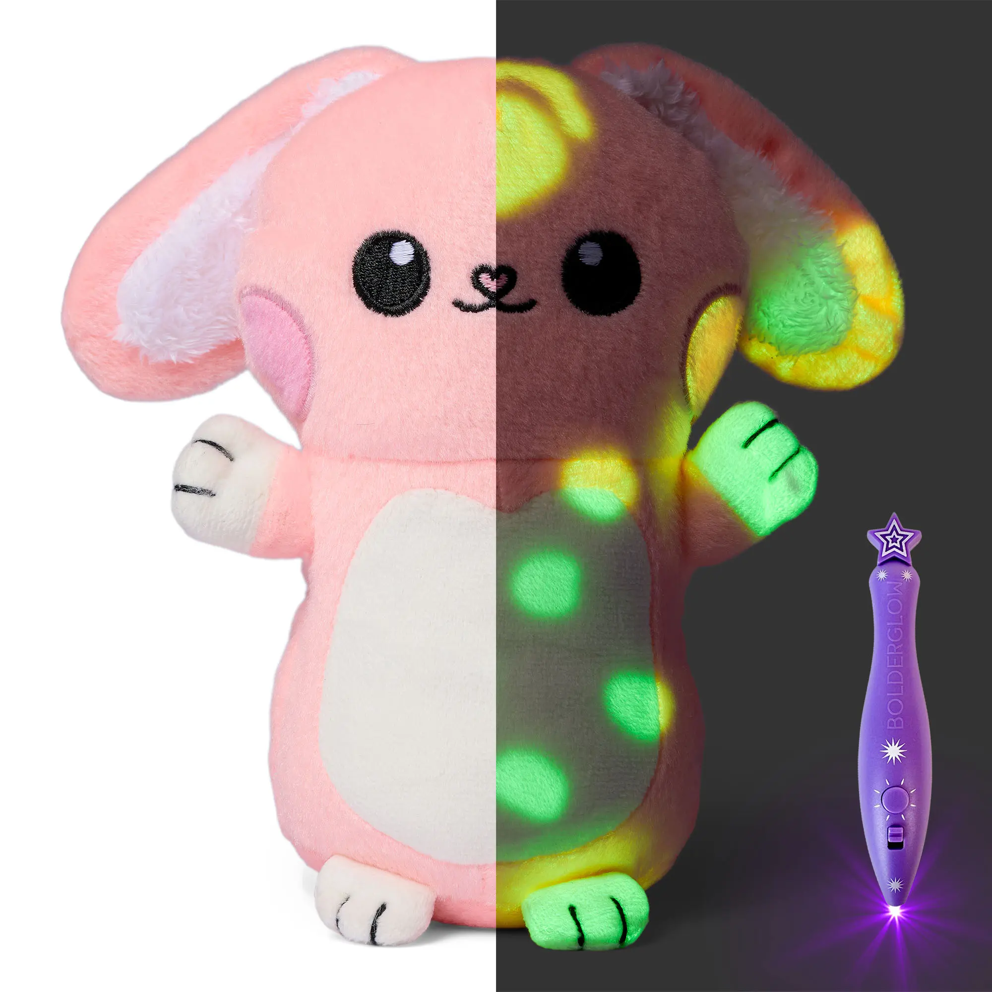 Totally mess-free, these plushes require no ink or cleanup. The Bolderglow Light Pen is included, perfect for bedtime play or quiet time. Create magic without the hassle. â¨