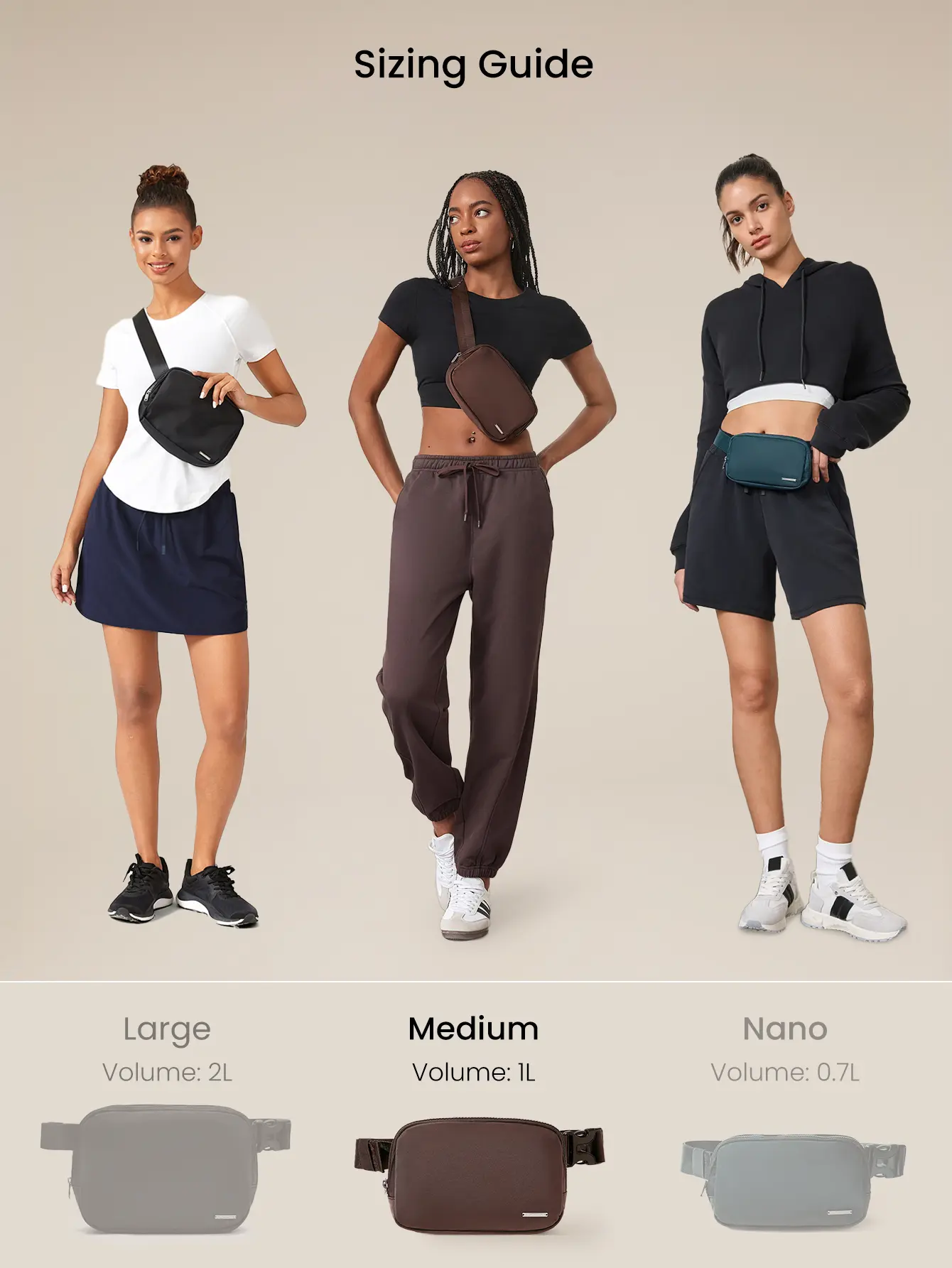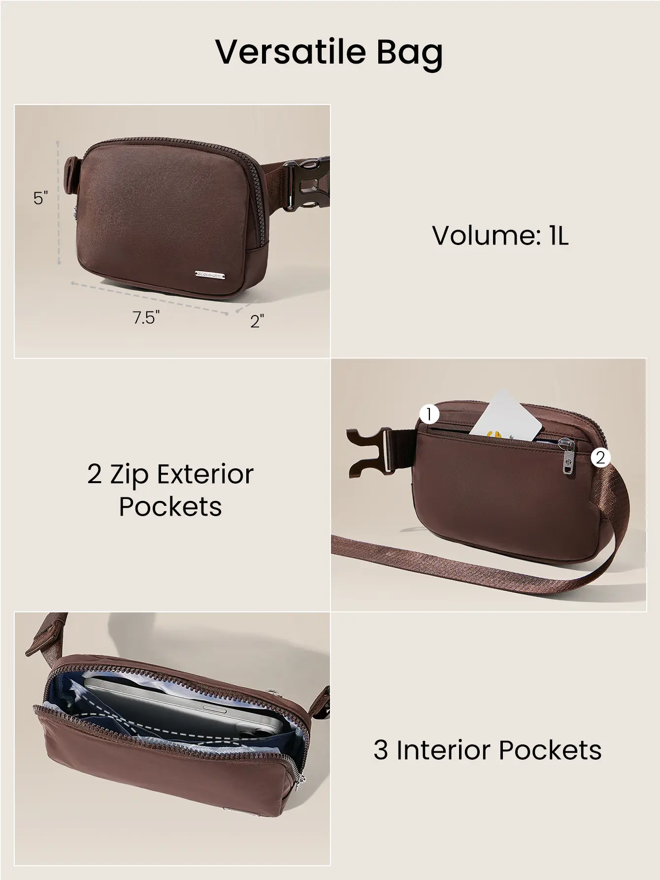 GLOWMODE 1L Zipper Everywhere Belt Bag Water Repellent Waist Crossbody Bags With Adjustable Strap