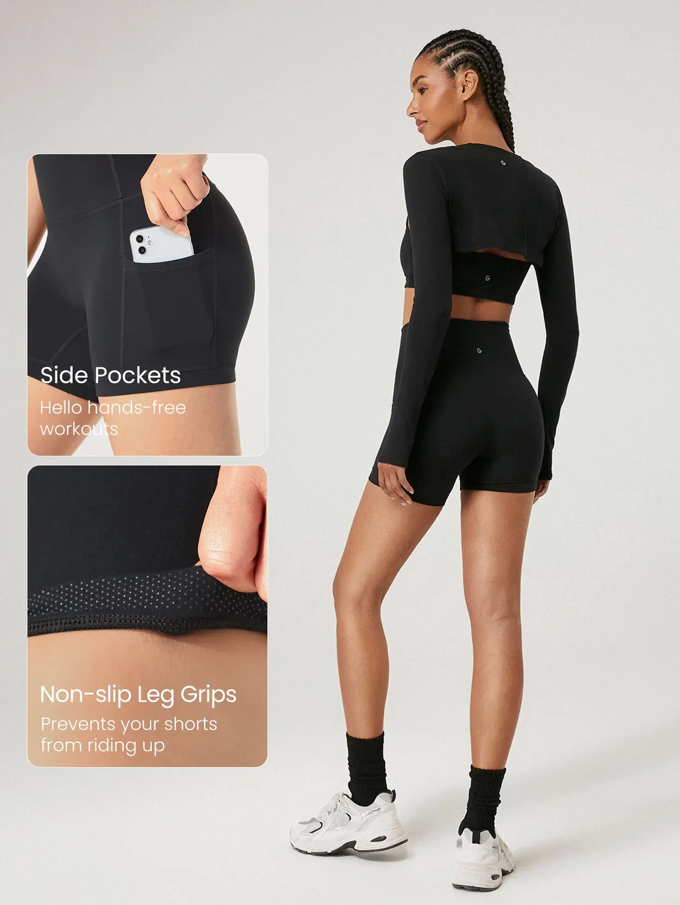 GLOWMODE 4.3" FeatherFit Anti-Slip Pocket Bike Shorts Non Front Seam Low Impact Cycling Running Gym Workout Summer TikTokShopBlackFriday