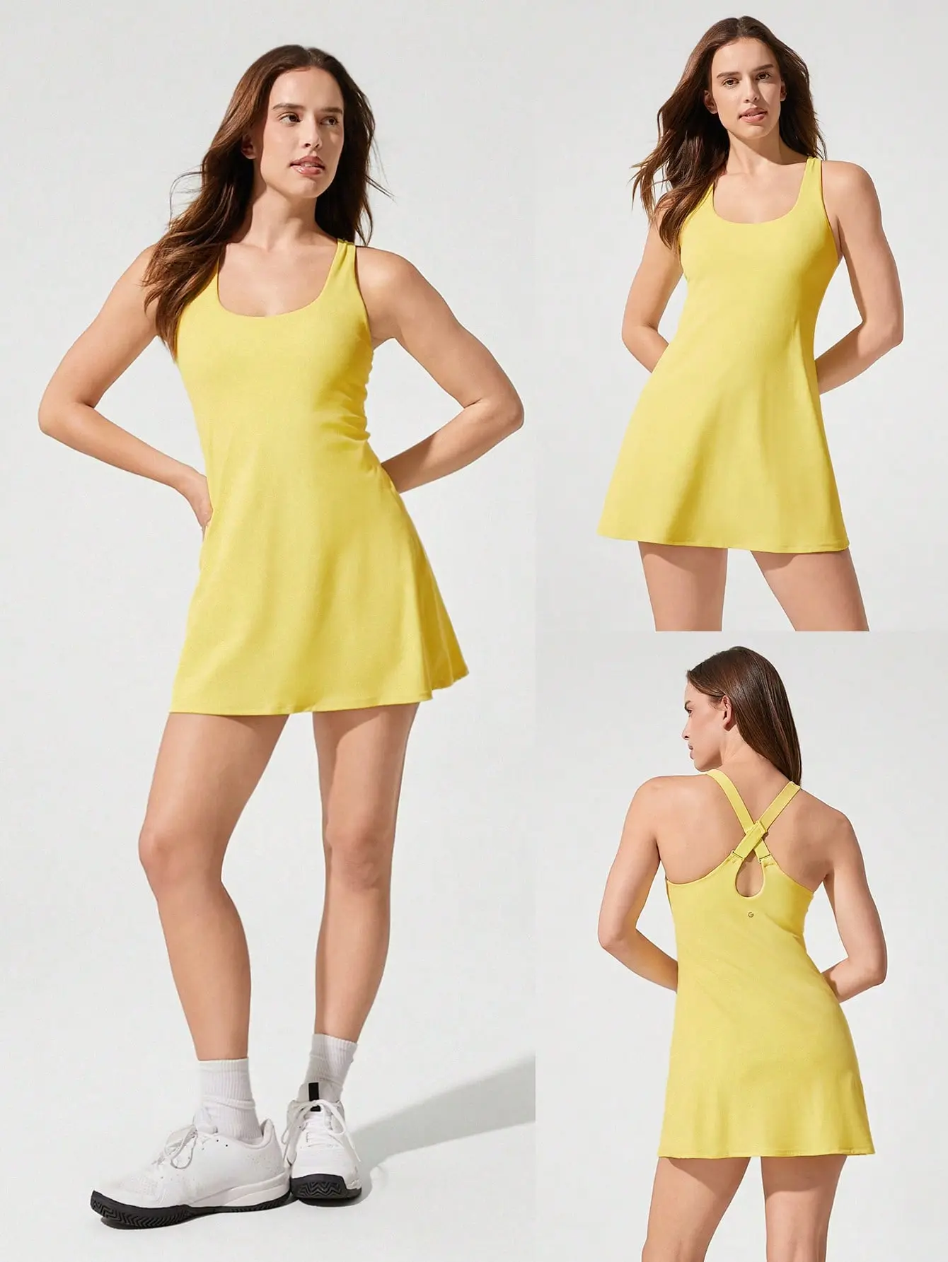 5. GLOWMODE FeatherFit-Air Peekaboo Strappy Dress With Built-In Anti-Slip Shorts Low Impact Yoga Summer Dress Quick Dry Moisture Wicking