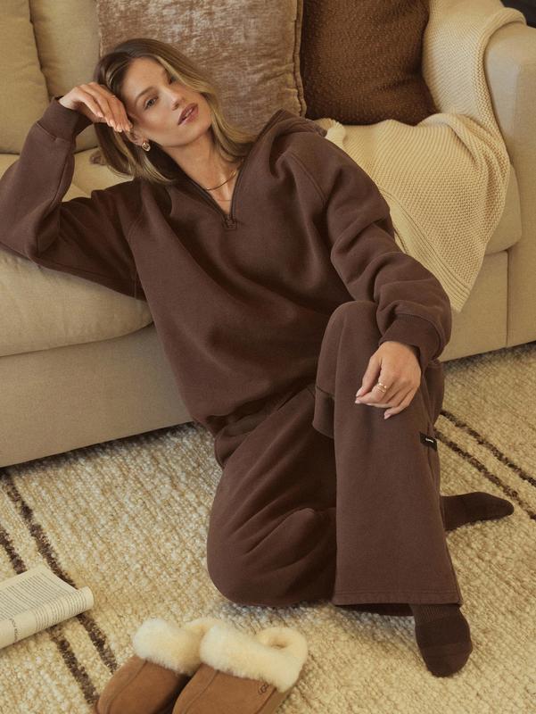 Love this staple sweat set! The zip hoodie is a unique detail and makes it easy to put on without ruining my hair and makeup.