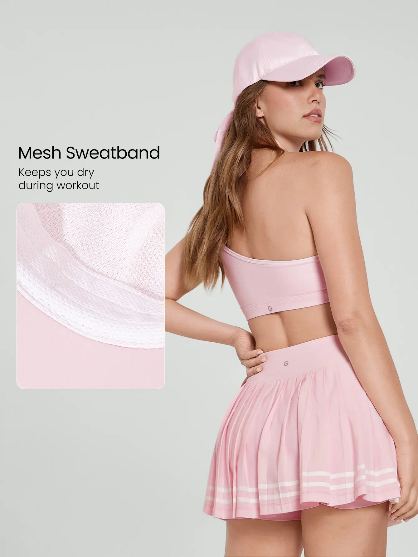Your everyday hat just got a major glow-up. Our lightweight Glowmode cap features a smooth satin finish that gives a subtle shine, with a bow on the backside for a cute yet sporty pop of style. It has an adjustable fit and a built-in mesh sweatband to keep you dry when the heat hits. Whether you're heading to Pilates or running errands post-workout, this cap keeps you chic, shaded, and ready to glow.