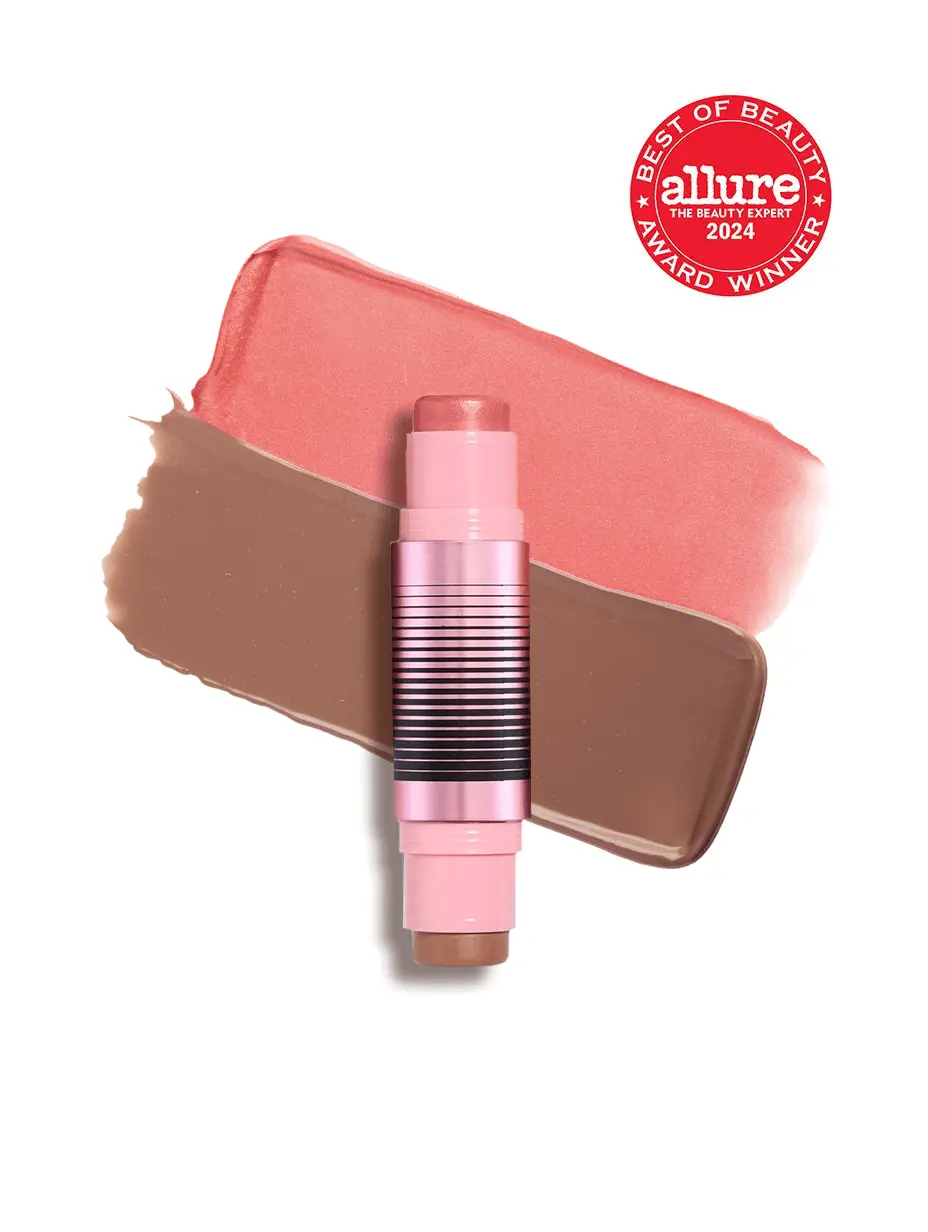 This easy Duo features a shimmering blush-highlighter and an ultra-creamy contour for the ultimate full-face glow-up. Achieve effortlessly blended definition and a pigmented, pearly glow, all in the flick of a wrist. Designed for versatility, layering and endless play, the beauty is in the blend.
