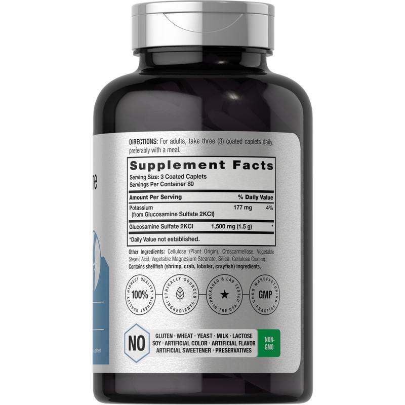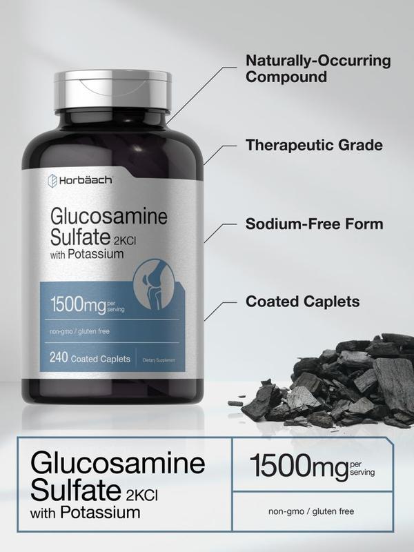 Horbaach Glucosamine Sulfate is a scientific formula featuring 1,500 mg Glucosamine Sulfate 2KCI, plus 177 mg of Potassium per serving in convenient coated caplets. It’s gluten-free, non-GMO, and quality tested to meet our unparalleled standards of purity and potency. Enjoy our Glucosamine supplement and get exceptional value with our 240-caplets supply!