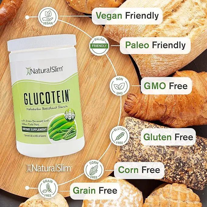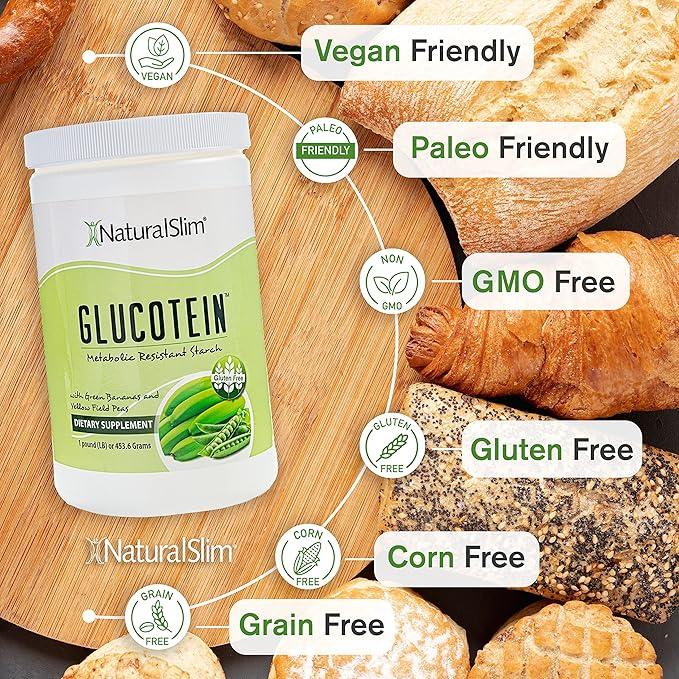 Glucotein is an organic fiber powder made from resistant starch sourced from green peas and green bananas. This gluten-free, non-GMO ingredient comes in a fine powder format that blends easily into a variety of recipes.