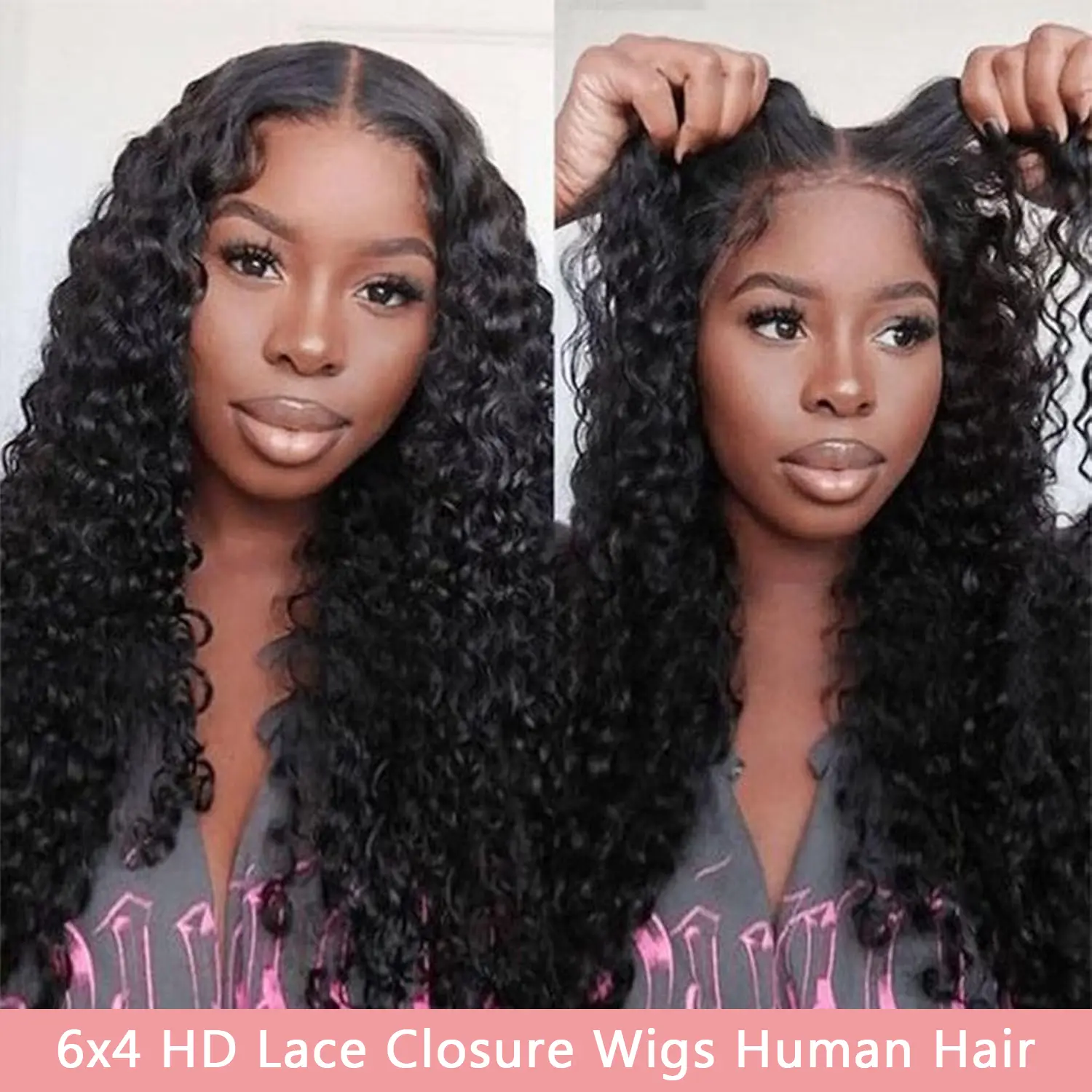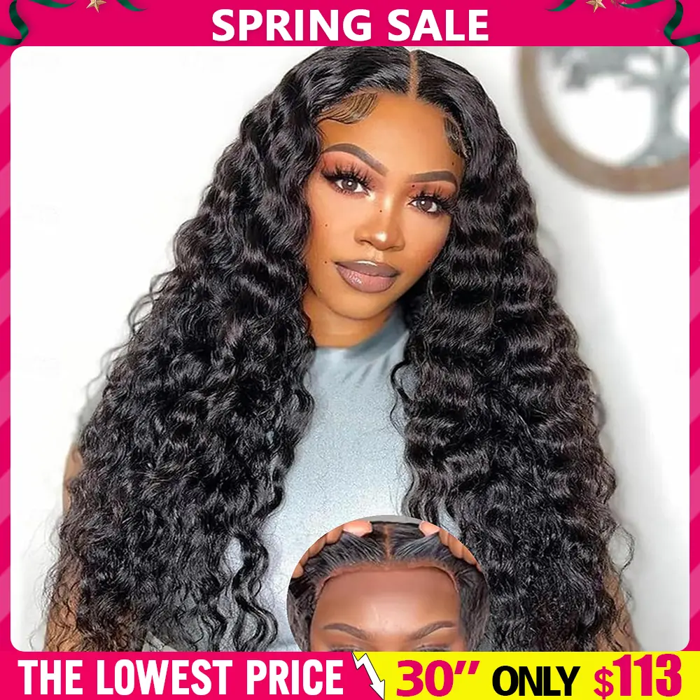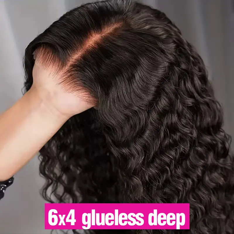 Glueless Wigs Deep Wave Human Hair 6x4 7x5 9x6 Pre Plucked Pre Cut Hd Lace Closure Ready and Go Deep Wave Curly Lace Front Wigs for Black Women Wet and Wavy Natural Hairline