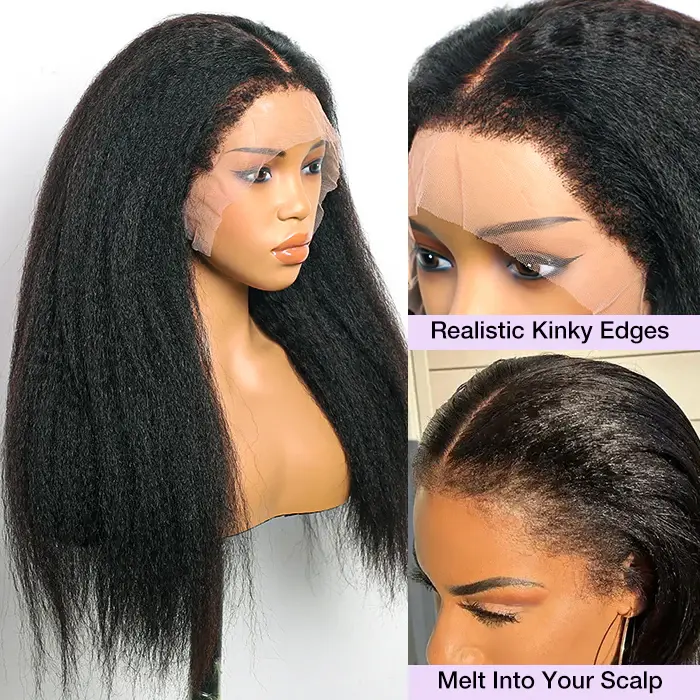 Human Hair Type 4C Kinky Edges Hairline Glueless Wig