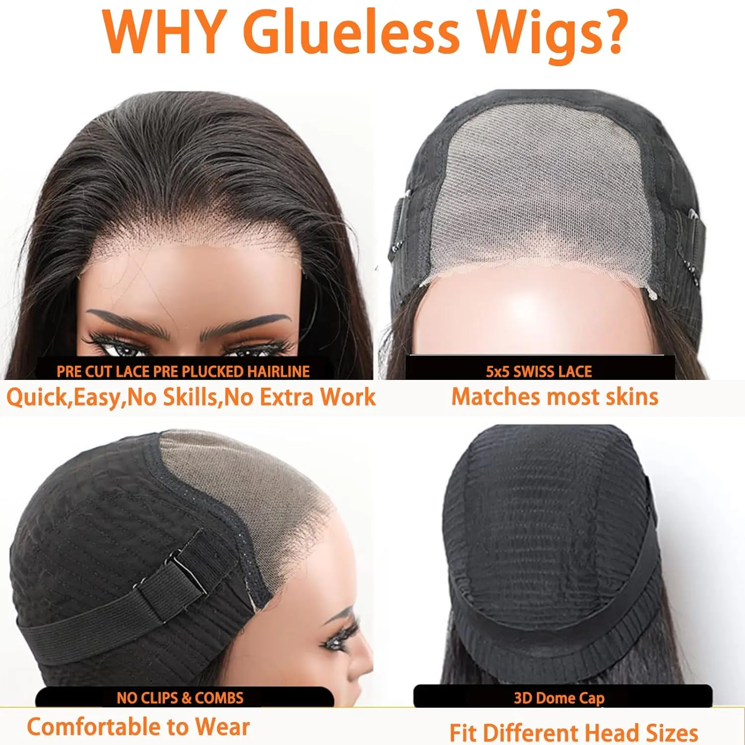 Bling Hair 6x4 Glueless Wigs Human Hair Pre Plucked Pre Cut Bleach Knot Wear and Go Glueless Wig 150 Density 6x4 Lace Closure Wigs Body Wave For Women