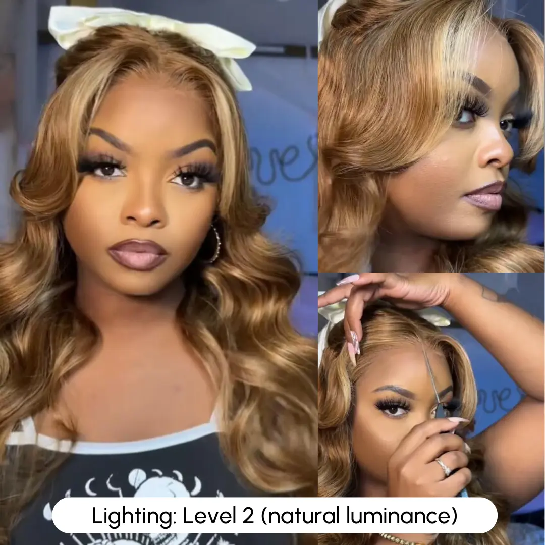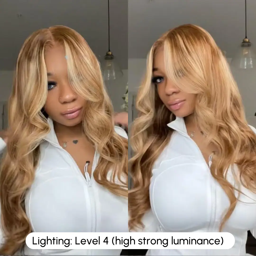 UNice Put On and Go Honey Blonde Highlights Body Wave Wig Pre Cut 7x5 HD Lace Human Hair Wigs with Pre Plucked Hairline OutdoorFun SpringStatements