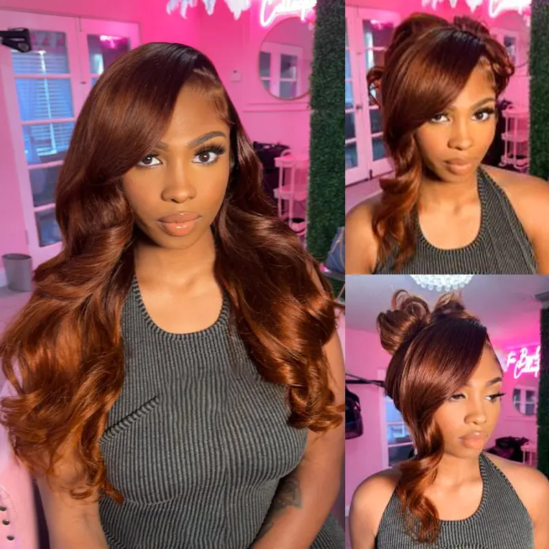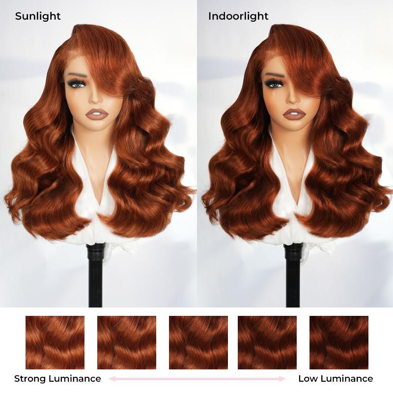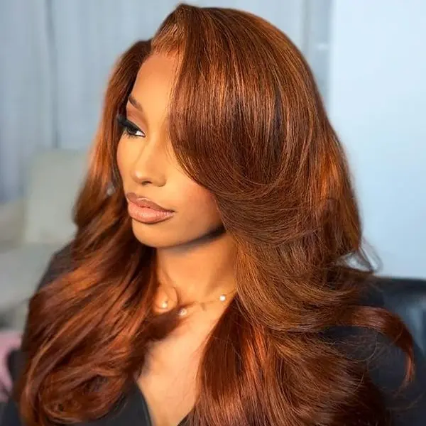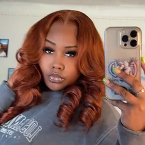 Amazing wig. Beautiful color and able to be styled straight, wavy and curly. I love it 🧡 shipping was fast too.