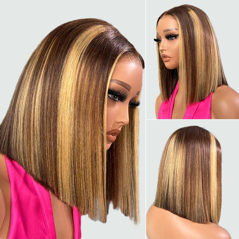 [FREE UPGRADE] West Kiss Highlight Glueless Human Hair Wigs Short Straight 7x4 Lace Closure Bob Wig Pre Cut Pre Plucked Human Hair Wigs