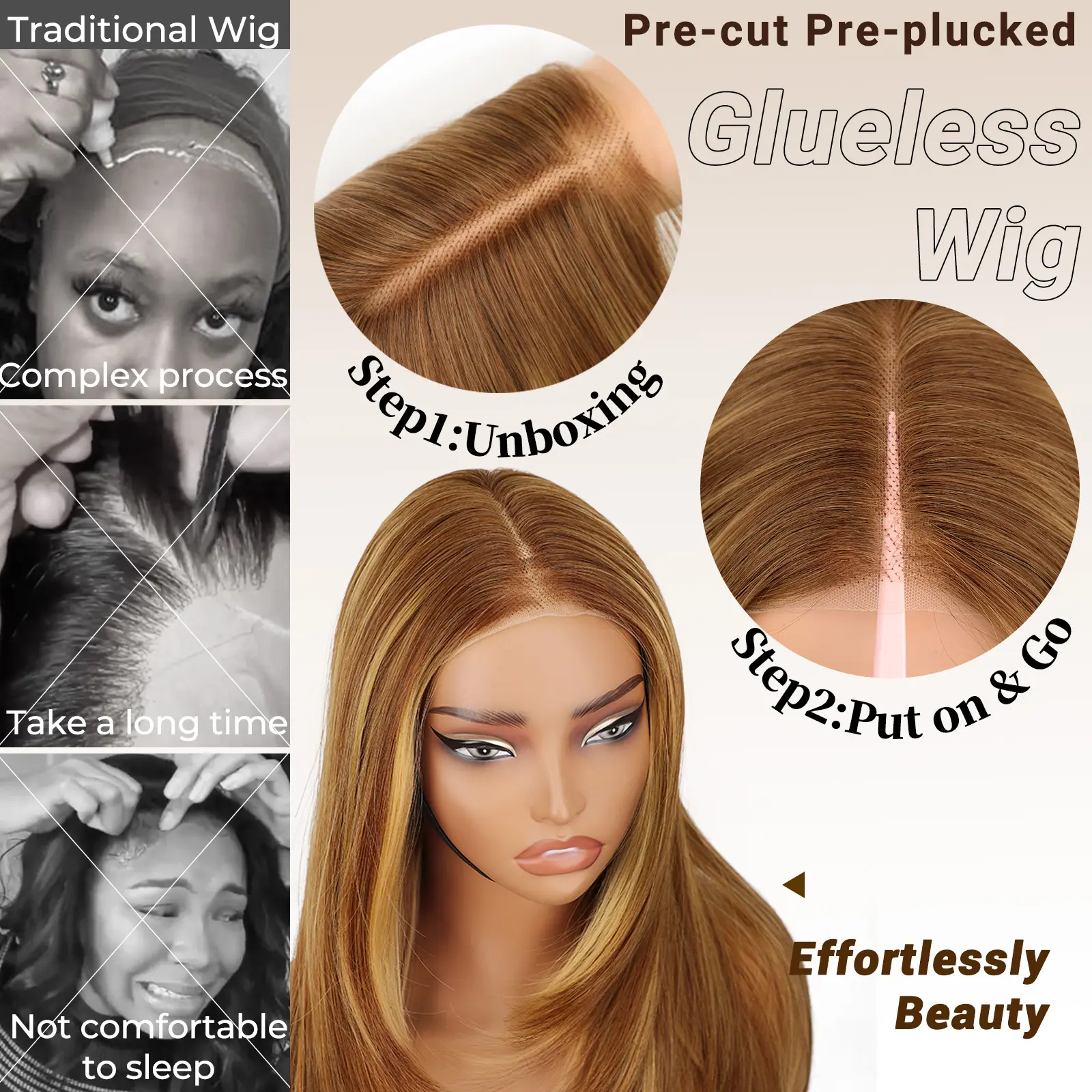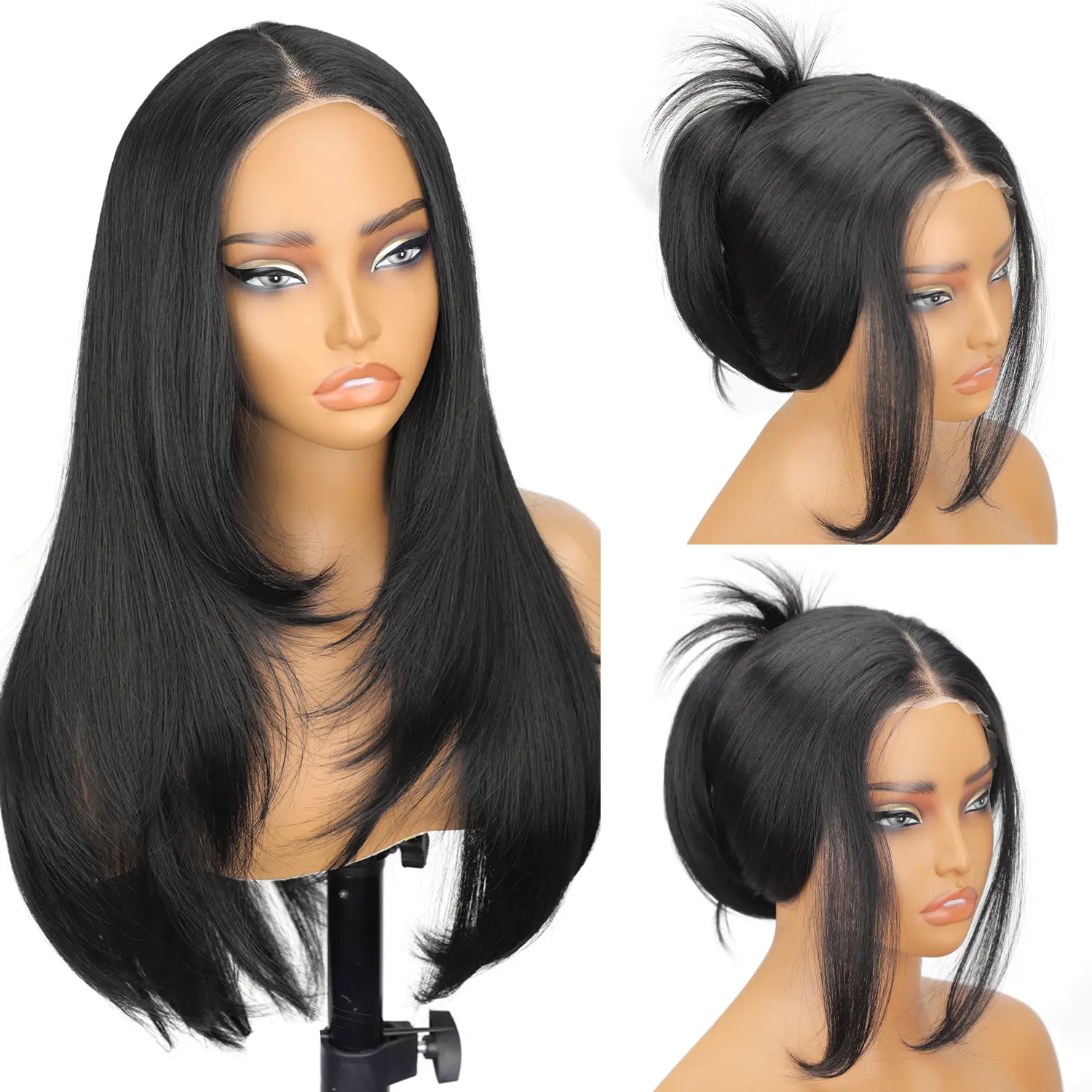 These wigs are perfect for beginners looking to enhance their hairstyle. The pre-plucked and pre-cut design ensures a natural appearance. The synthetic material and lace front provide comfort and versatility. Ideal for women who want a stylish, long, layered straight wig with bangs.