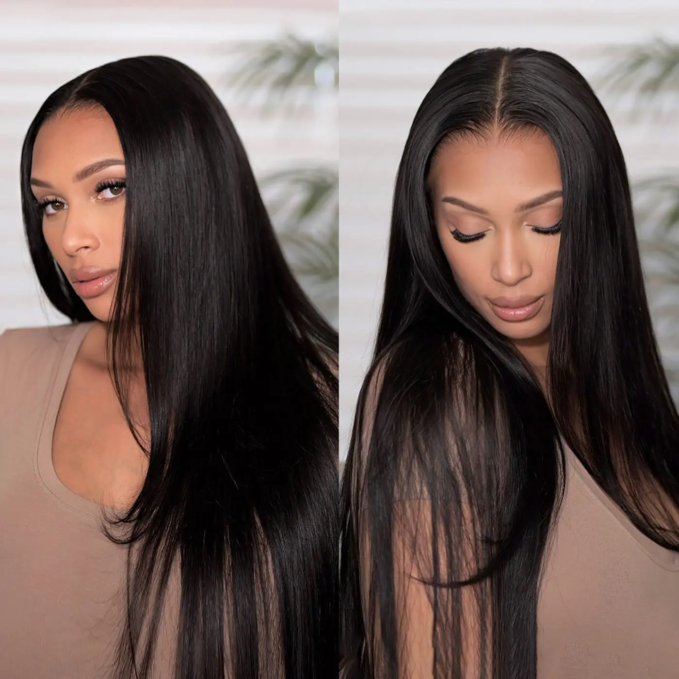 Nice soft sleek straight hair! Came within 6 days and no smell. All you need is powder foundation to put on the lace really. My 1st 4 pics are w/o Ebin’s lace melt spray and the rest are with it. For a flatter look I used hair wax, a hot comb, and Got2B spray after. There’s no wig comb though.💕