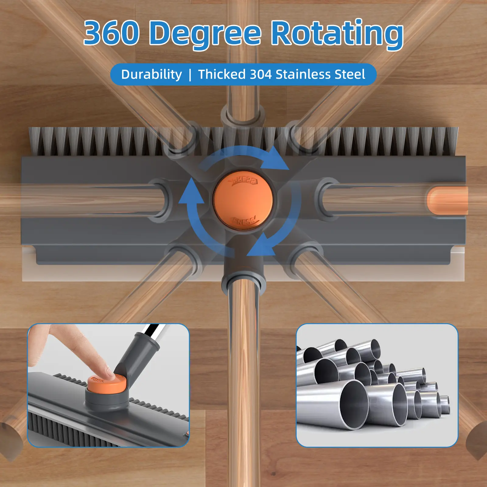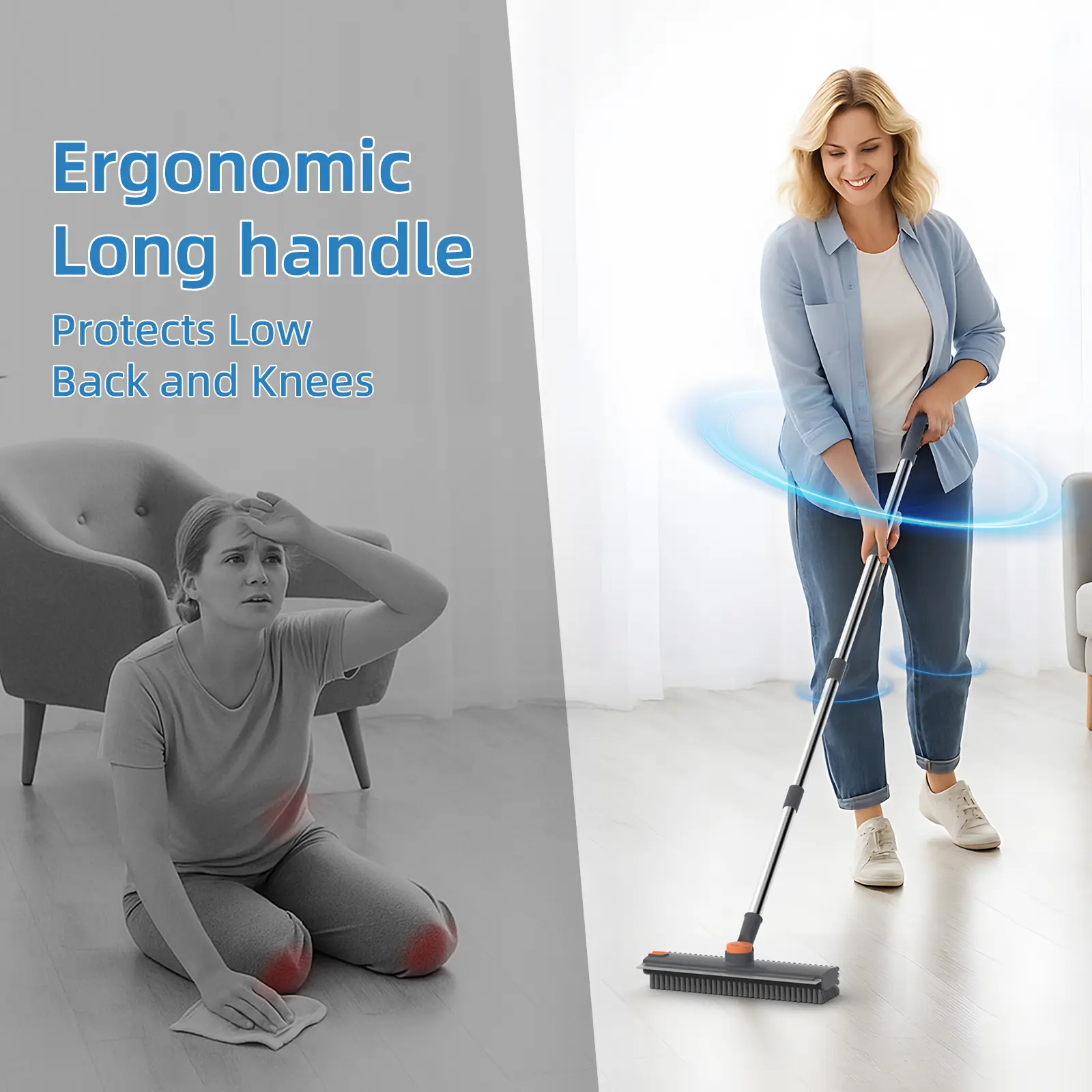 ·Adjustable Extended Handle: Customize your reach! The sturdy stainless-steel handle extends from 16" to 52", so you can clean floors, windows, and showers standing up—no bending or back pain. addition, the handle top has hole for hung in any location