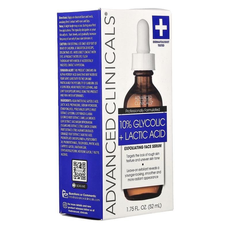 Advanced Clinicals 10% Glycolic + Lactic Acid Serum , 1.75 fl oz (52 ml)