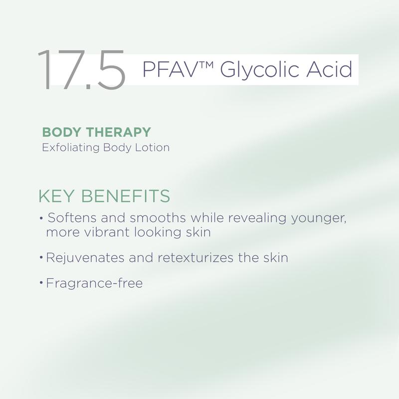 Specifically targets and improves bumpy skin texture. Gently exfoliates using Glycolic Acid for enhanced smoothness. Promotes skin that feels soft, hydrated, and free of bumps. Aids in diminishing the appearance of rough patches.